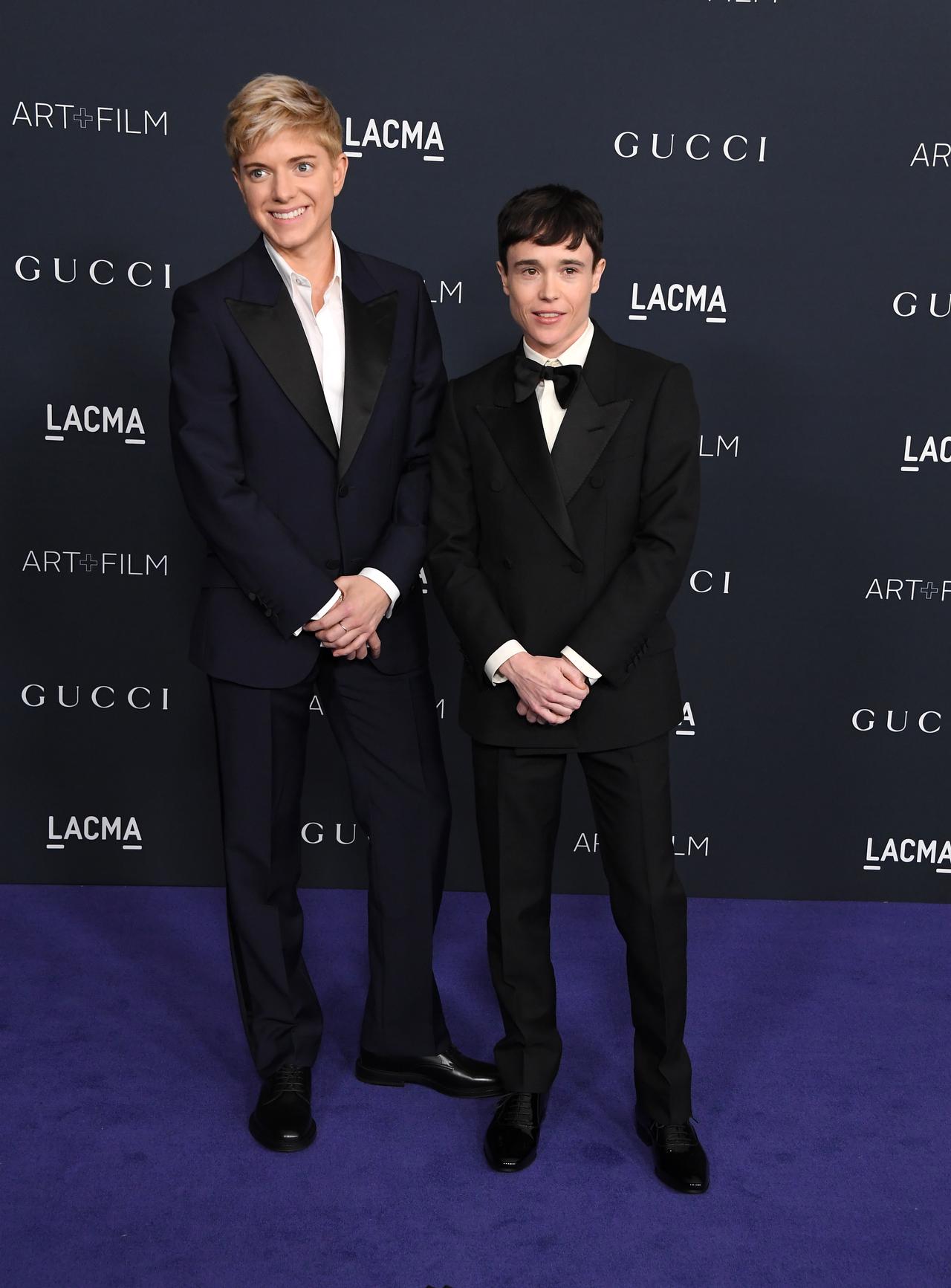 ドラマ『アンブレラ・アカデミー』などで知られる俳優のエリオット・ペイジが、コメディアンや俳優として活動するメイ・マーティンを同伴してロサンゼルスで催されたガライベントLACMA Art +Film Galaに出席。2人揃ってGucciのスーツでキメて、レッドカーペットでのフォトコールに応えた。