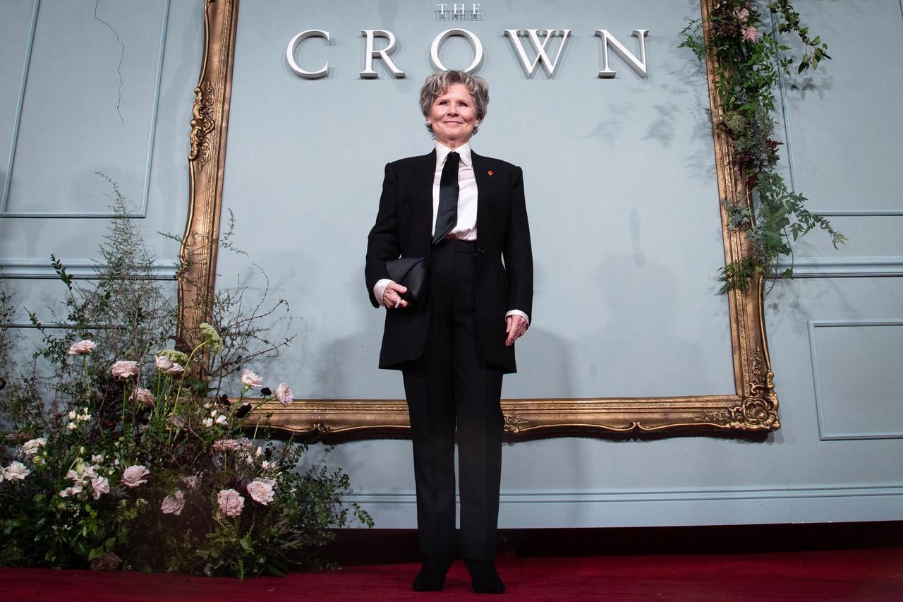 『ハリー・ポッター』シリーズのドローレス・アンブリッジ役で有名なイメルダ・スタウントンが、エリザベス女王を演じる『ザ・クラウン』のプレミアにスーツ姿で参加した。(フロントロウ編集部)