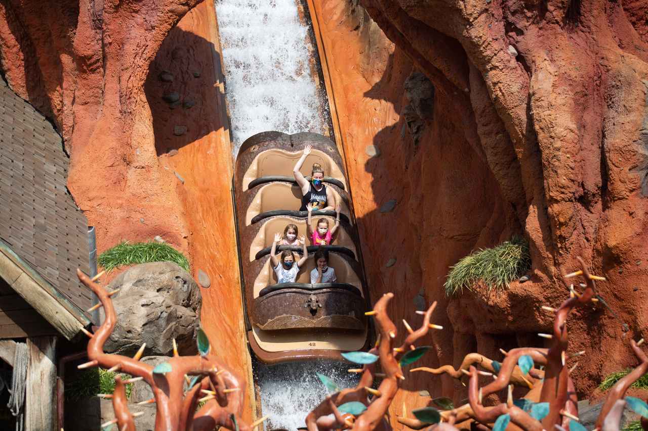 日本の東京ディズニーランドでも絶対にハズせない乗り物として、つねに長蛇の列ができているスプラッシュ・マウンテンの一番の醍醐味は、なんといっても最後に山の頂上から滝つぼに向かって急降下する瞬間だが、今回、ゲストが水浸しになったのはそれよりも前。