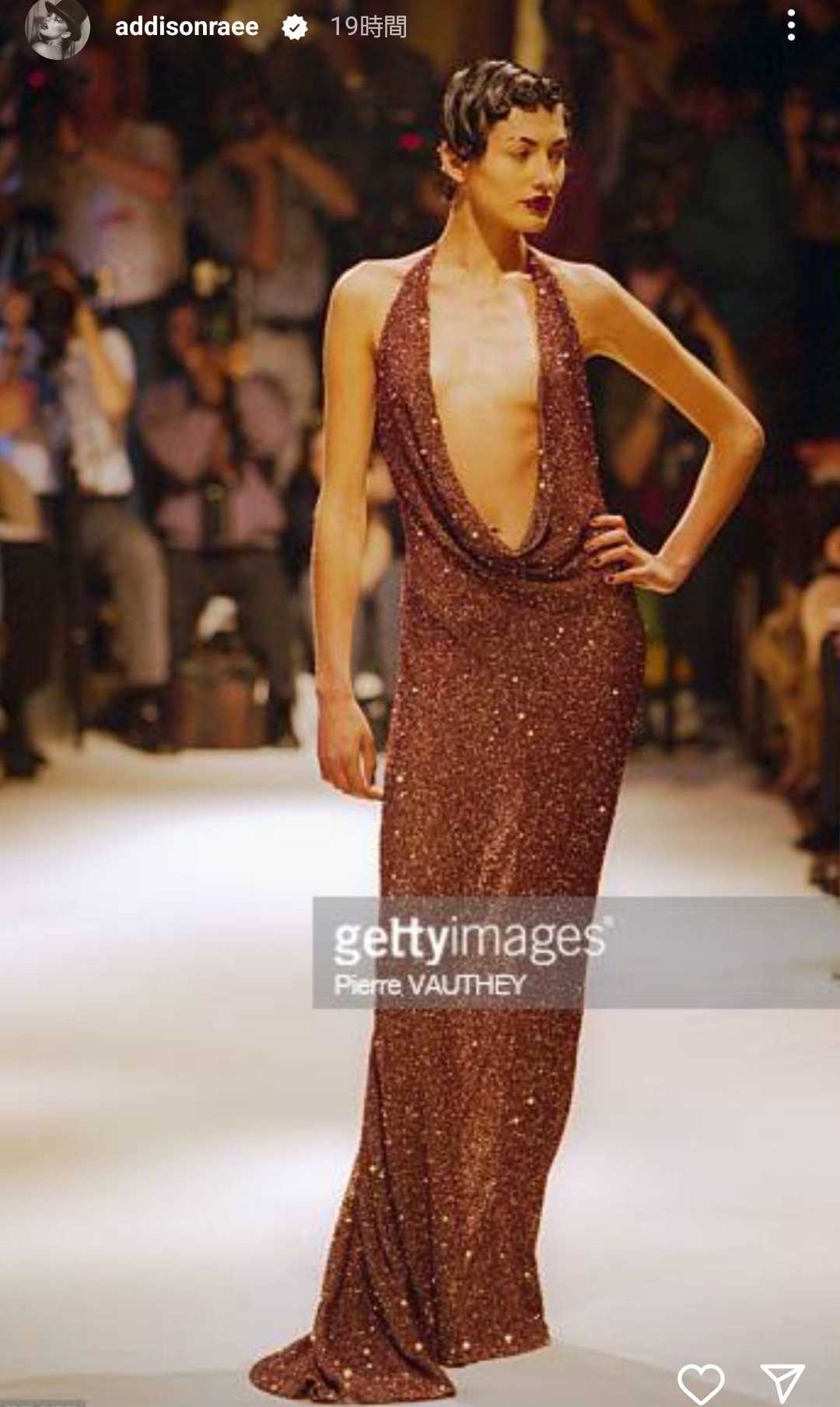 アディソンは、当時のショーでこのドレスを実際にモデルが着用している写真を自身のインスタグラムのストーリーズで紹介。