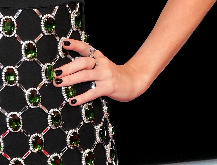 そしてこのドレスに合わせて、テイラーは手のネイルを真っ黒に、足のネイルを黒ベースにキラキラと輝く素材を組み合わせて、ドレスとマッチさせた。