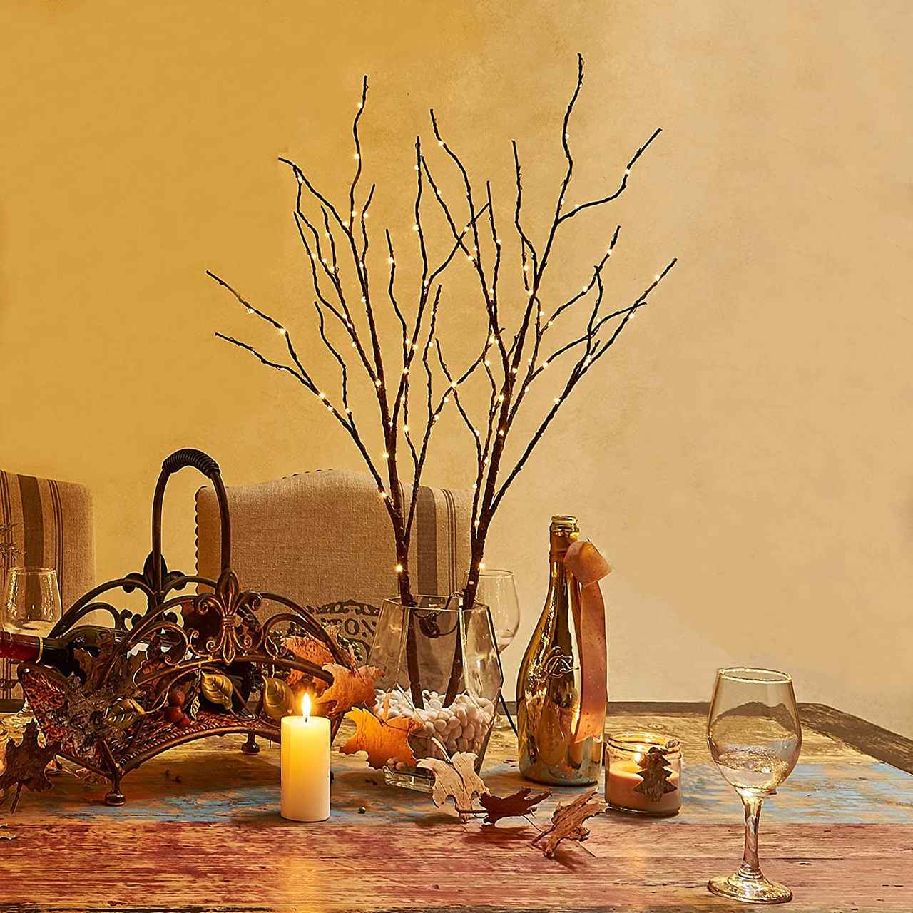 落ち着いたインテリアが好きだけれど、ほんのりクリスマス気分も味わいたいという人にオススメなのが、LEDライトつきのブランチツリー。花瓶に挿し入れるだけで、オシャレかつホリデーっぽいムードを味わえる。