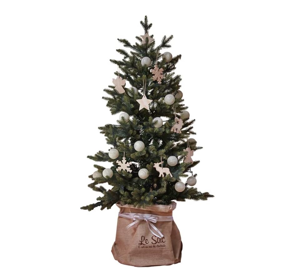今っぽいオシャレなクリスマスツリーをお探しなら、北欧風のツリーがオススメ。クリスマスの飾りやオーナメントなどの基本的なデコレーショングッズと、ツリーの根元部分を隠せる麻バッグがまとまったフルセット構成が嬉しい。