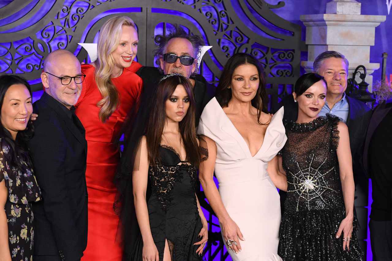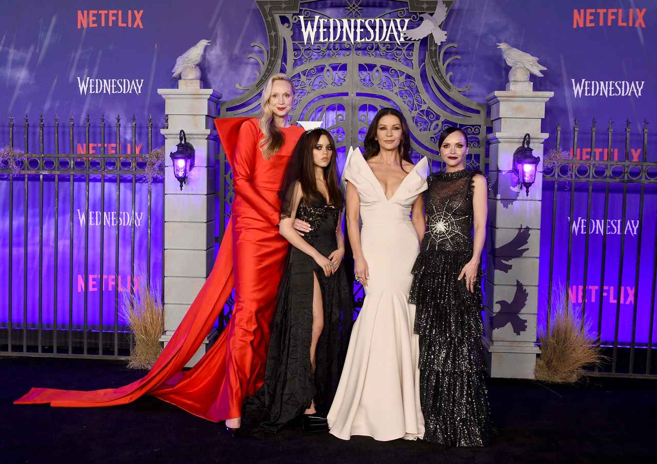 『ウェンズデー』のプレミアで、ジェナ・オルテガとクリスティーナ・リッチが2ショット! ティム・バートン監督やキャサリン・ゼタ=ジョーンズ、グェンドリン・クリスティーなども勢ぞろいした。(フロントロウ編集部)