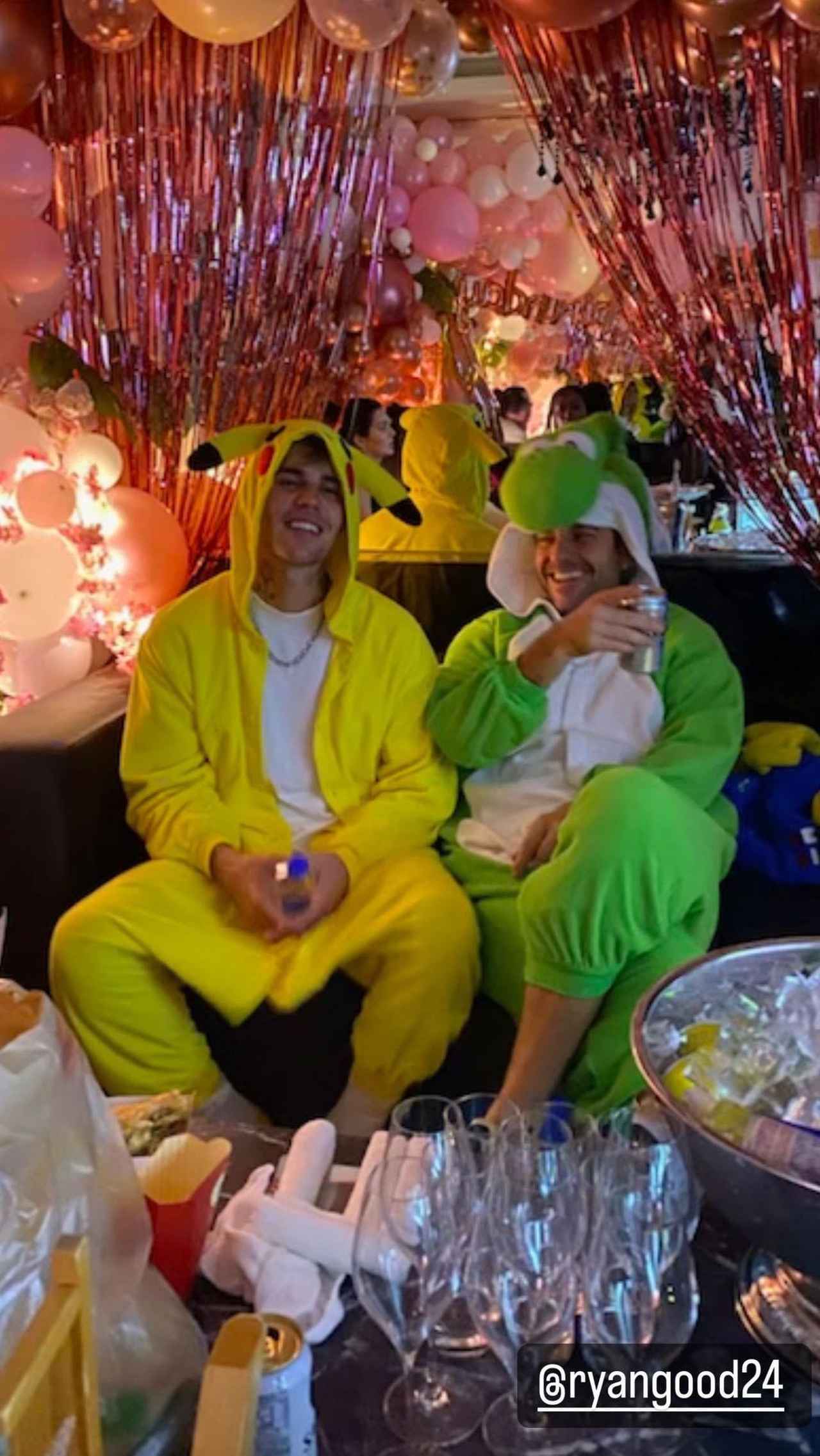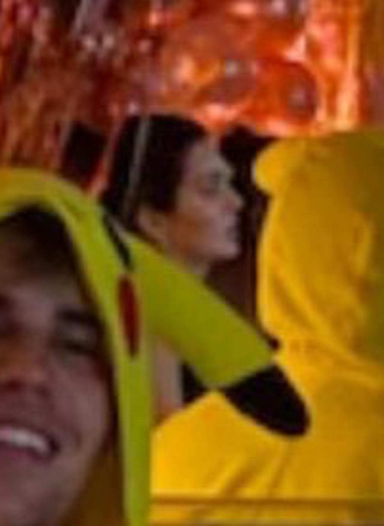上の写真が撮影されたのと同じ日かどうかはわからないが、ピカチュウのワンジー(着ぐるみ)を着て笑顔を見せるジャスティン。