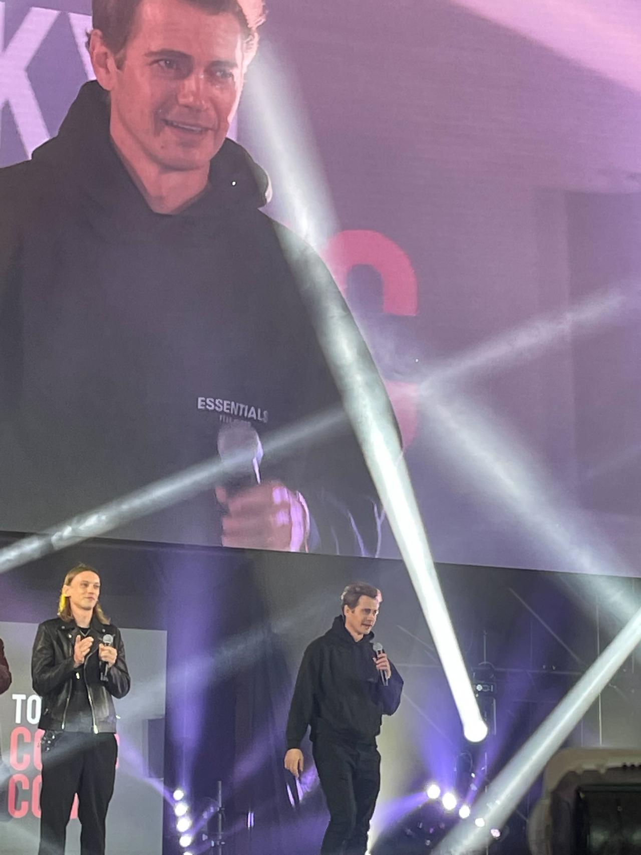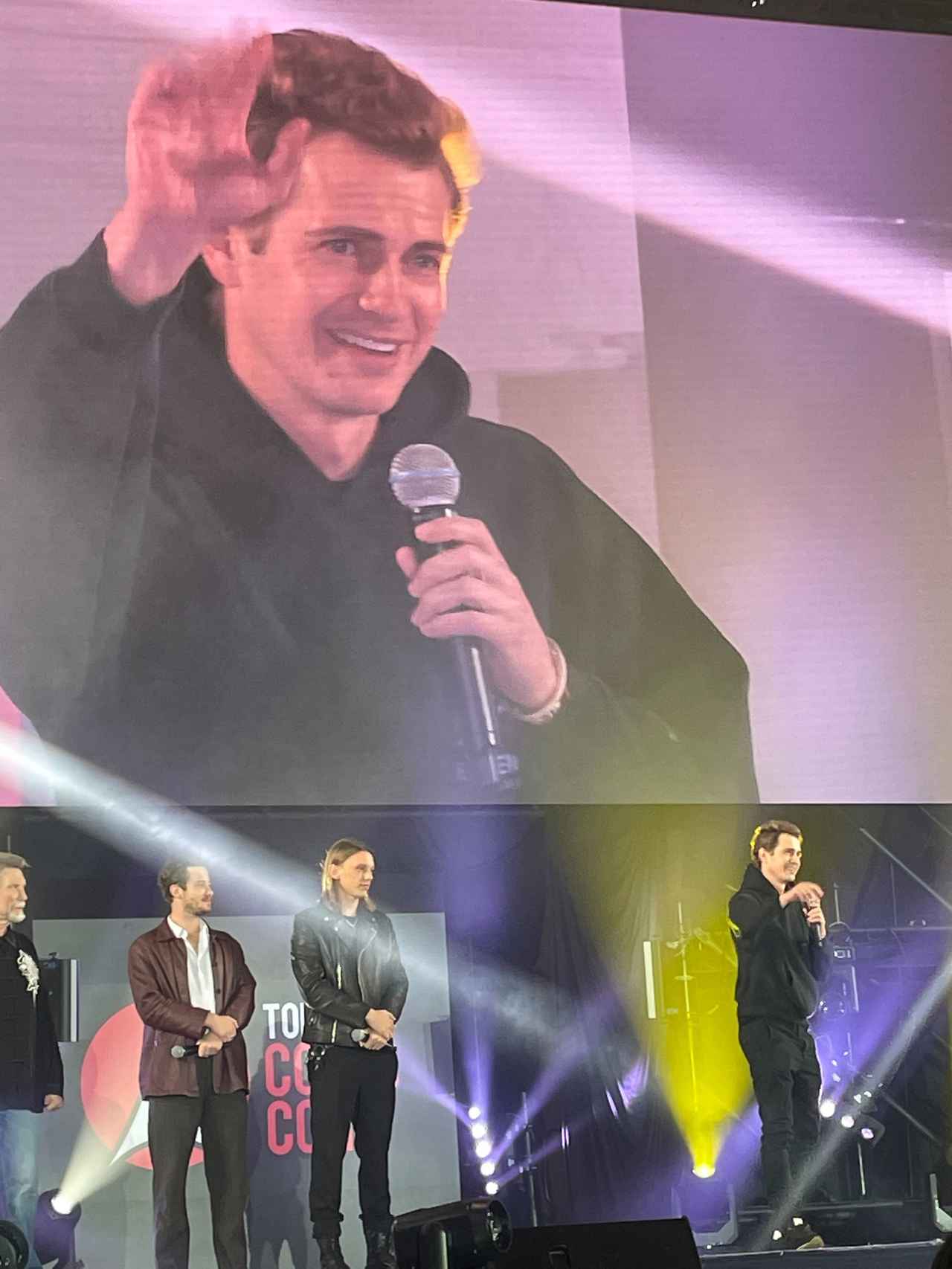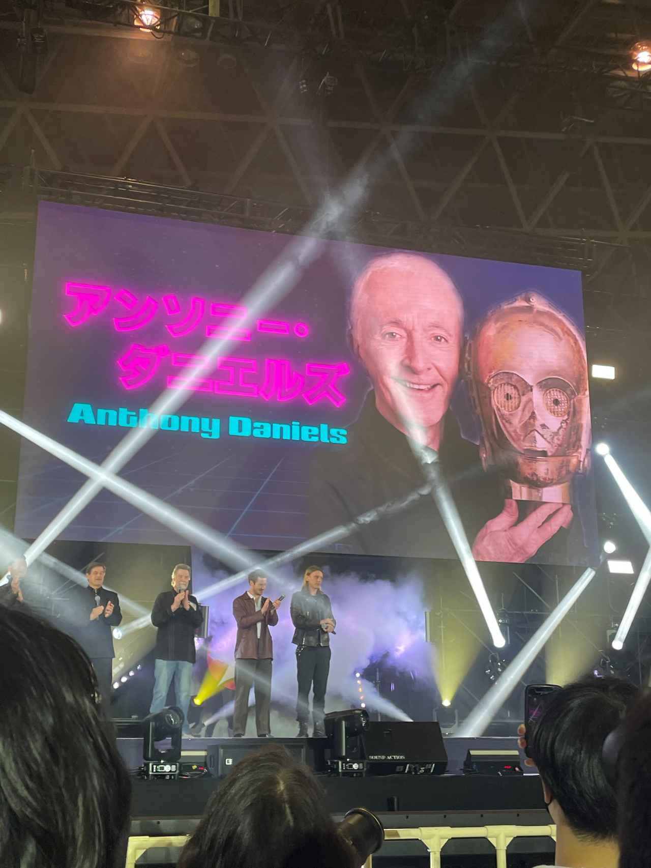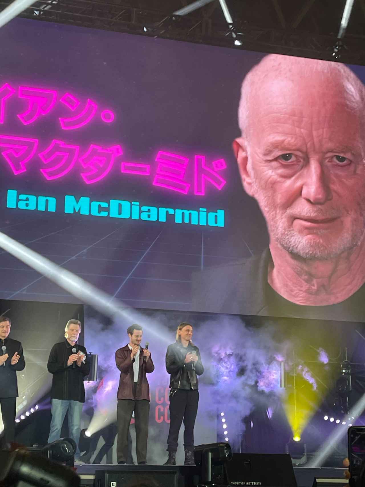 そしてここから、『スター・ウォーズ』シリーズ勢が連続で登場! C-3POのアンソニー・ダニエルズ、アナキン・スカイウォーカーのヘイデン・クリステンセン、パルパティーンのイアン・マクダーミドの登場で、会場のボルテージはMAXに。アンソニーがC-3POの声で「フォースと共にあらんことを(May the Force be with you)」と話し、イアンが開口一番に「ダークサイドからこんにちは(Greetings from the dark side)」と言ってくれたともなれば、ファンから上がる歓声はもう言葉にはなっていないのだった。