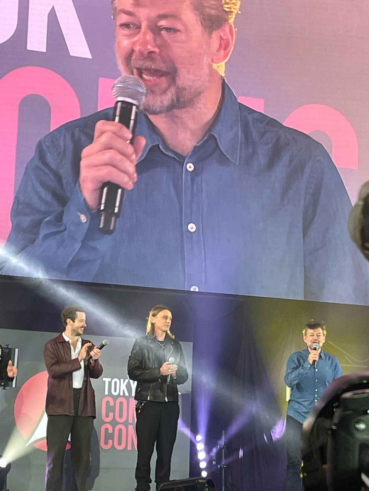 そして、『ロード・オブ・ザ・リング』のゴラム、『キング・コング』のキング・コング、『猿の惑星』のシーザー、MCUのユリシーズ・クロウ、『ザ・バットマン』の執事アルフレッド、『ヴェノム:レット・ゼア・ビー・カーネイジ』の監督、というコミコンのゲストとして相応しすぎるアンディ・サーキスの登場で会場の熱気はぐんぐん上昇。