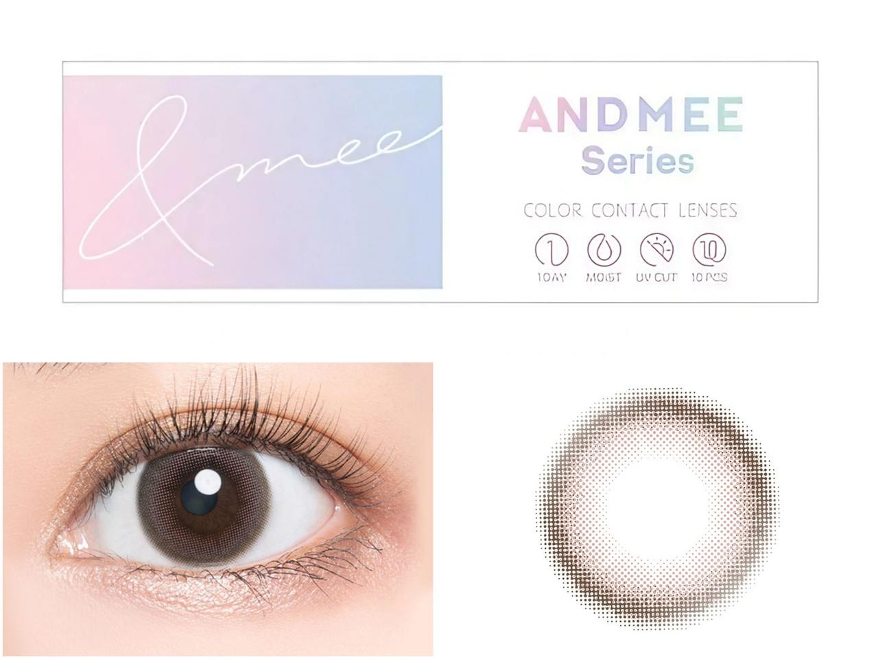 アンドミー(AND MEE)は、こだわりの裸眼風デザインでデイリー使いしやすいナチュラルカラーのワンデーカラコン。新色である「チェリーパイ」は、ほんのり甘いピンクブラウンでとろんとしたキュートな瞳をかなえる。