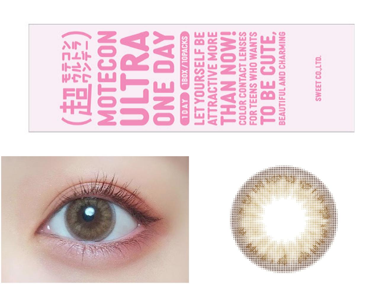 超モテコンの「ウルトラワンデー」は、自然な色素薄い系ちゅるん盛りをかなえる、黒めでも茶目でもなじみやすいワンデーカラコン。盛りたいけど透明感も欲しいという人には、とろけるようなはちみつカラーの「ウルトラメガハニー」がピッタリ。
