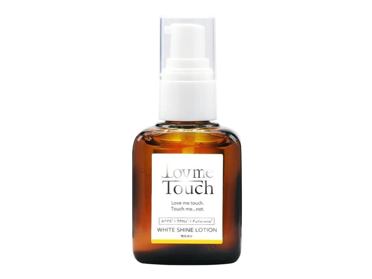 ラブミータッチの「ホワイトシャインローション APPS+TPNa+フラーレン」は、ビタミンC誘導体APPS、ビタミンE誘導体TPNa、フラーレンを高濃度に配合した美容液。水にも油にもなじみやすく進化型ビタミンCが角質層まで素早く浸透。イキイキとした輝きとハリのある肌へ。