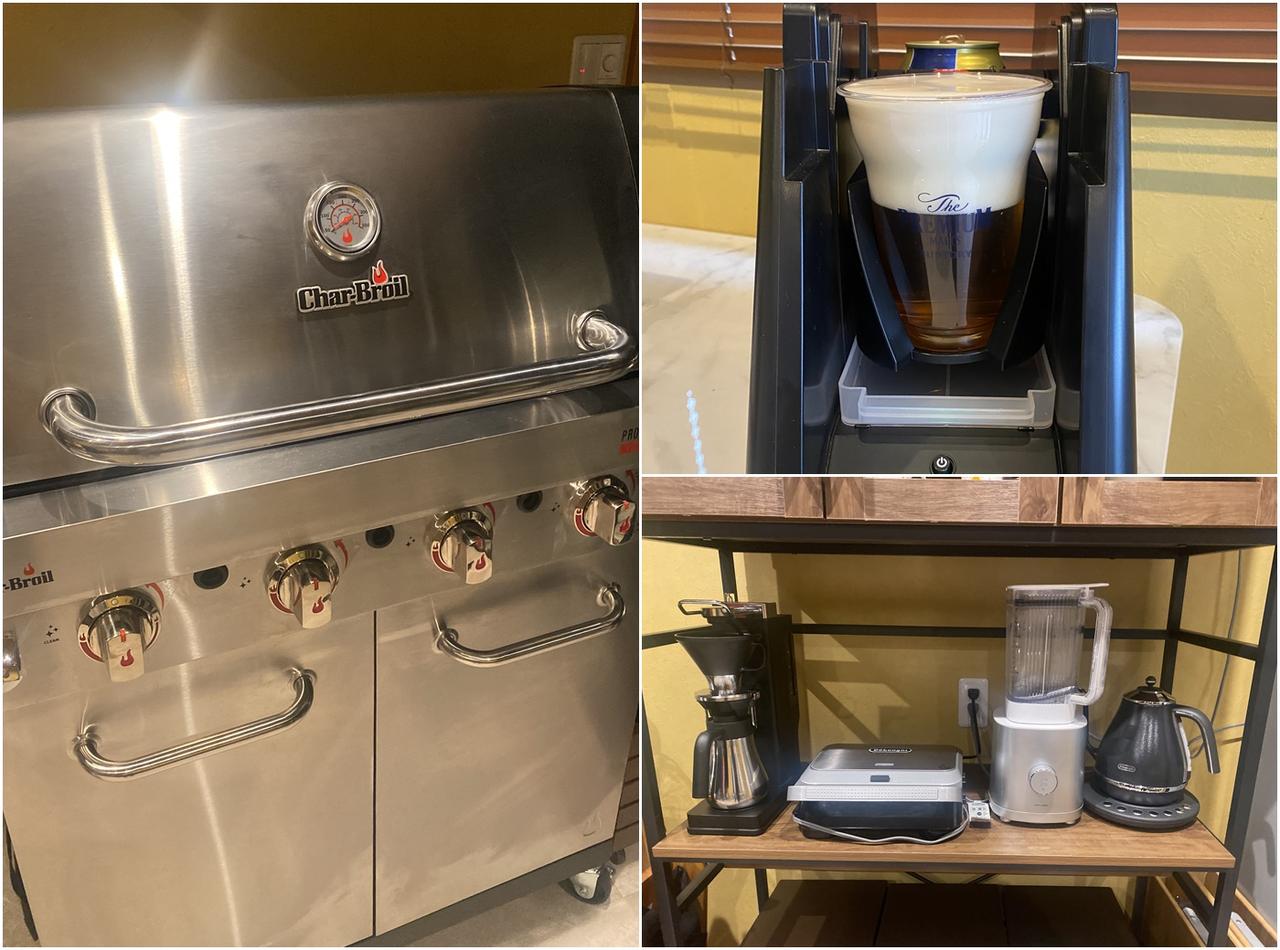 そしてキッチンの設備にも注目。グリルは米Char-Broil製のガスグリル、朝のスムージーメーカーはドイツZwilling製、コーヒーメーカーはBalmuda製、ビールは“神泡”が体験できる特製ビールサーバーでと、ガジェット魂が高鳴るアイテムがあちこちに。大人はスイッチの入れ方や火加減、飲料の注ぎ方などでプチ盛り上がりした。