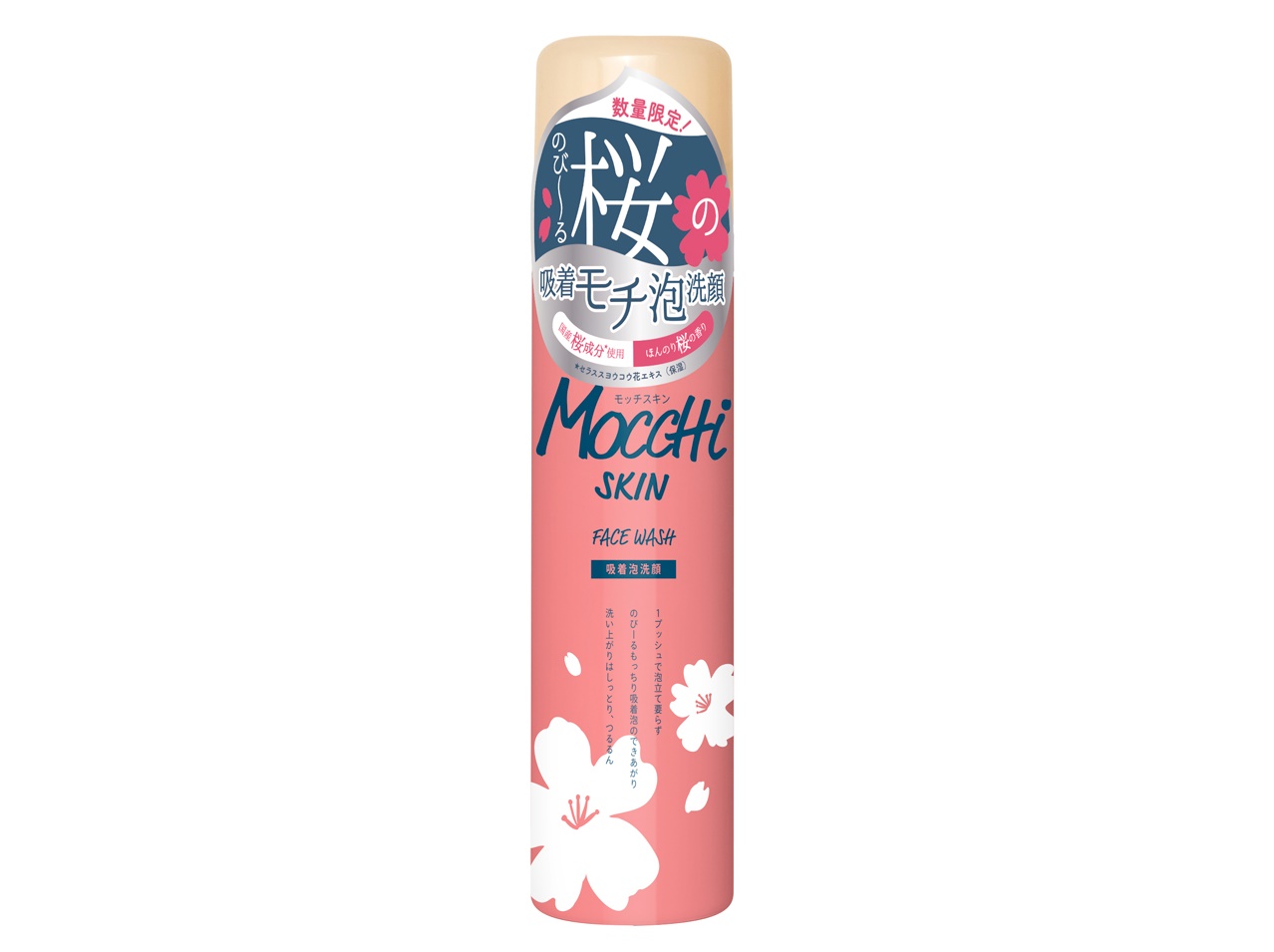 今回発売になるのは、「モッチスキン 吸着泡洗顔SKR(桜)」「モッチスキン 吸着クレンジングSK(桜)」の2つのアイテム。どちらも国産の桜エキスを配合。