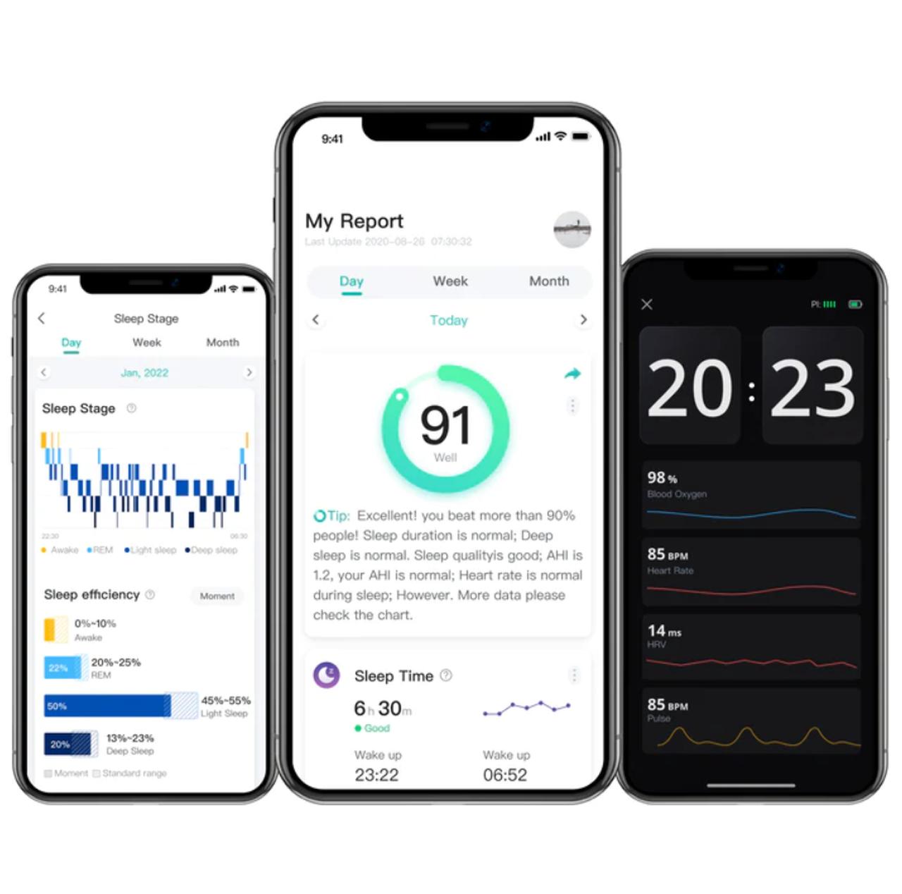 「Go2sleep」はエビデンスに基づき、睡眠の傾向とパターンを深く理解できるよう設計されているのが特徴。心拍数や心拍変動だけでなく、血中酸素までもリアルタイムでモニタリングできて、分単位の睡眠レポートまで可視化。高度な睡眠管理を実現してくれる。
