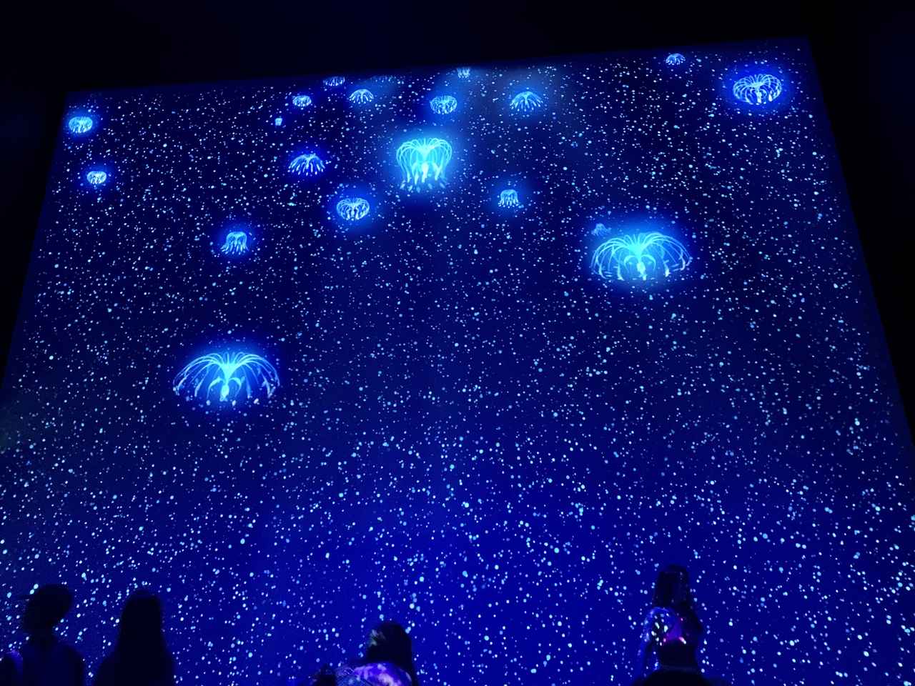 手をかざすと生物を発光させられるというインタラクティブな仕掛けも。