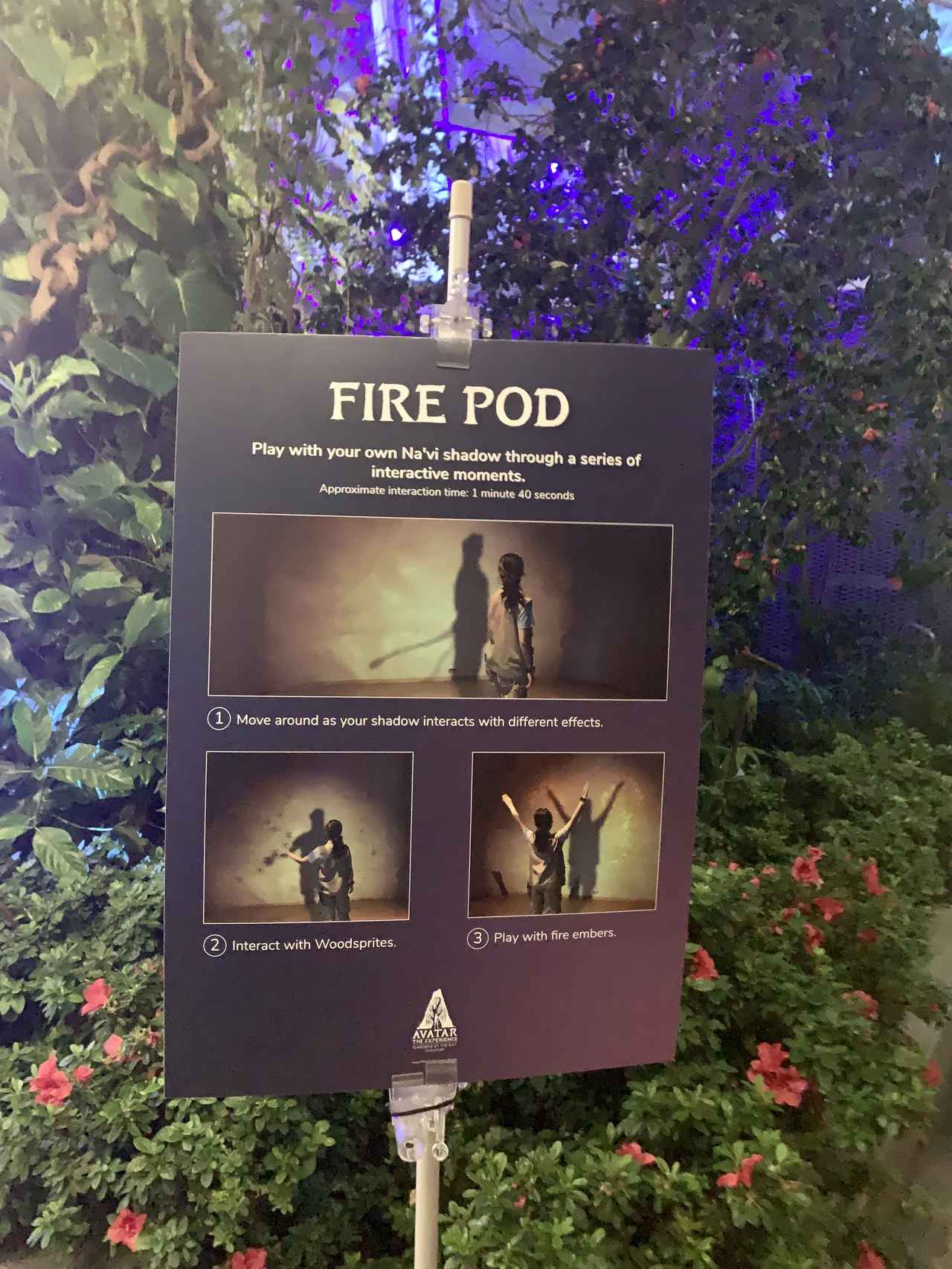 「アバター:ザ・エクスペリエンス」のフィナーレを飾るのは、こちらも体験型のアトラクション。床を歩きながら、パンドラの世界観を体感できるというものになっている。