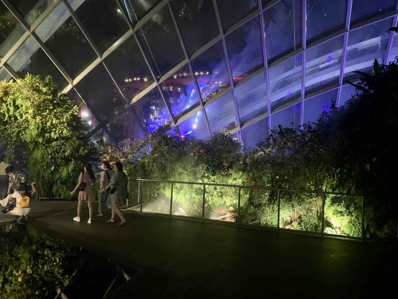 続いてガーデンズ・バイ・ザ・ベイの名物である螺旋階段へ。この時には、窓の外にマリーナベイ・サンズを望むこともできた。
