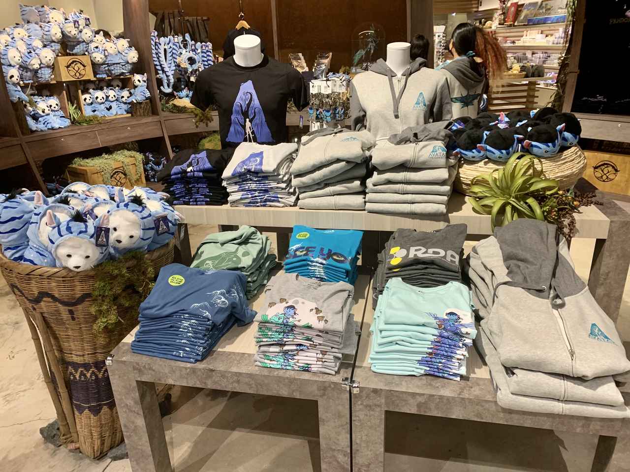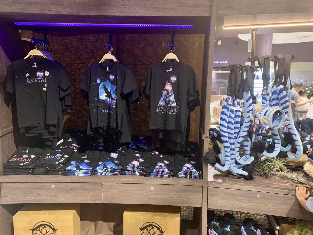「アバター:ザ・エクスペリエンス」のウォークスルーを抜けると、最後にはオフィシャルショップが。もちろんここには、ぬいぐるみやTシャツ、そしてカチューシャまで、ここでしか買うことのできないオリジナルグッズも豊富に揃っているので、訪れた際には絶対にチェックしてほしい。
