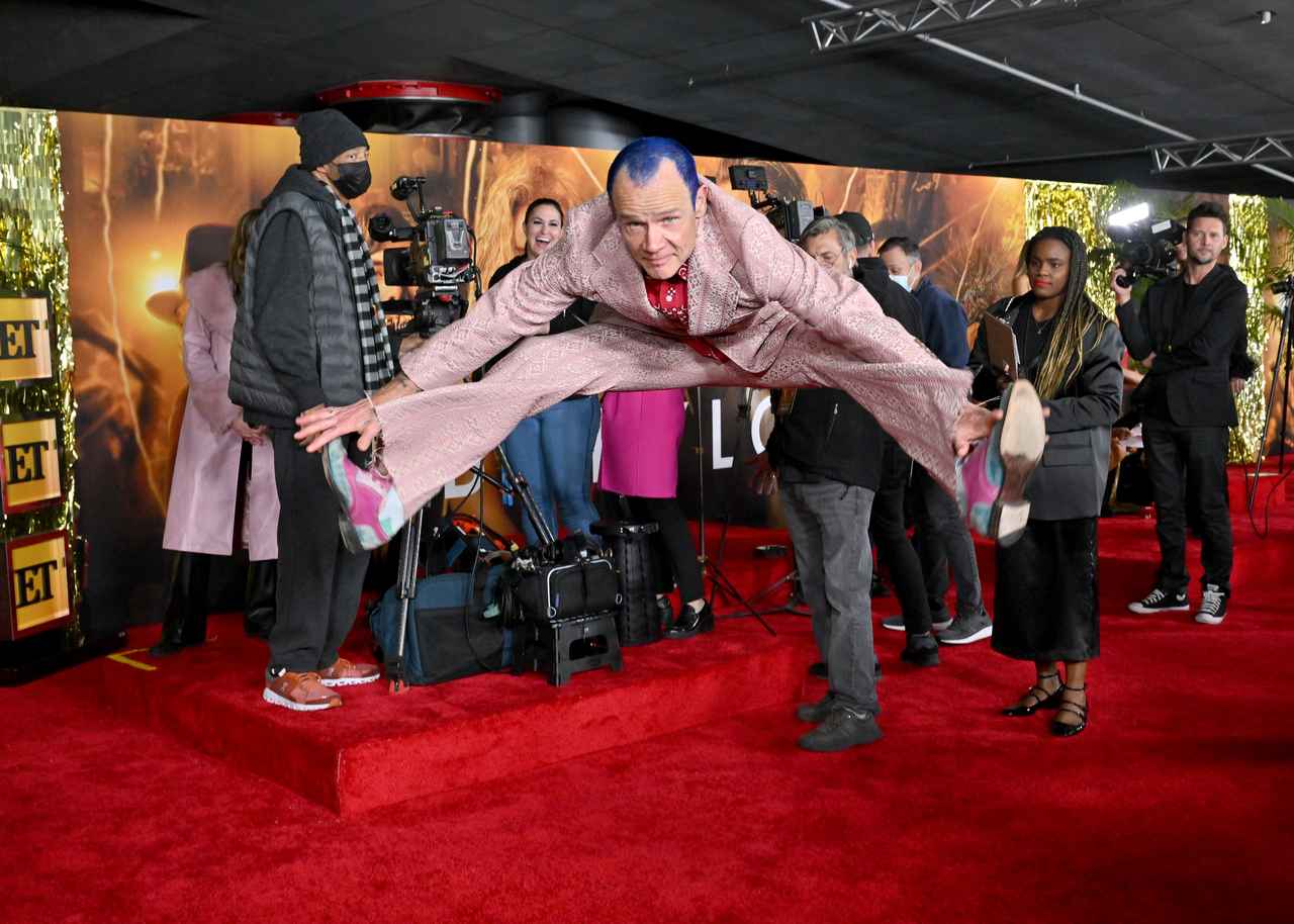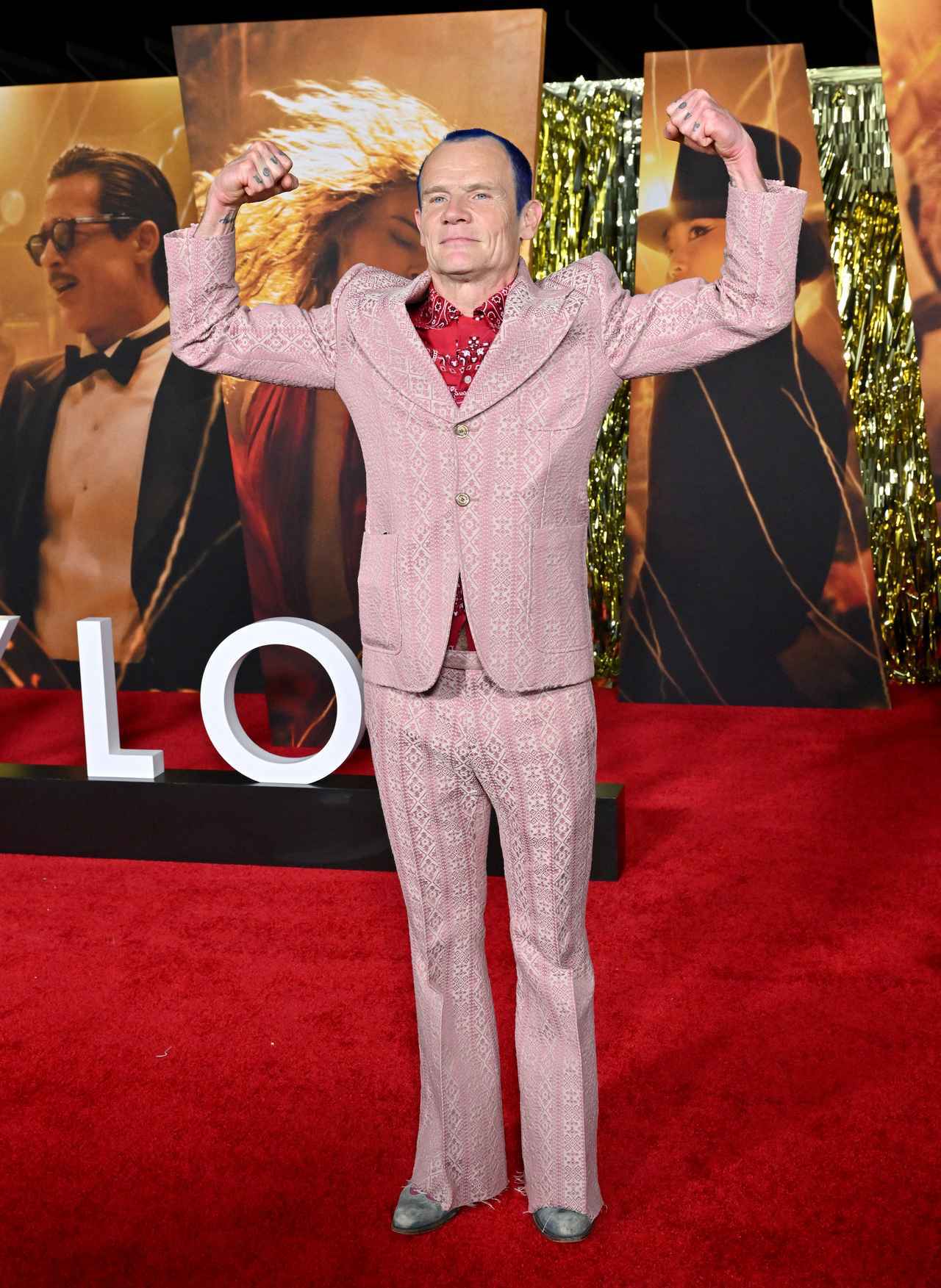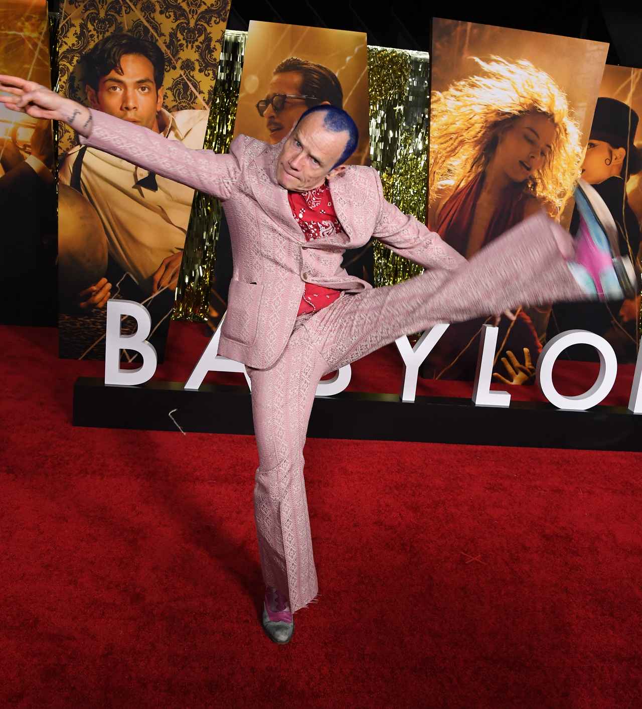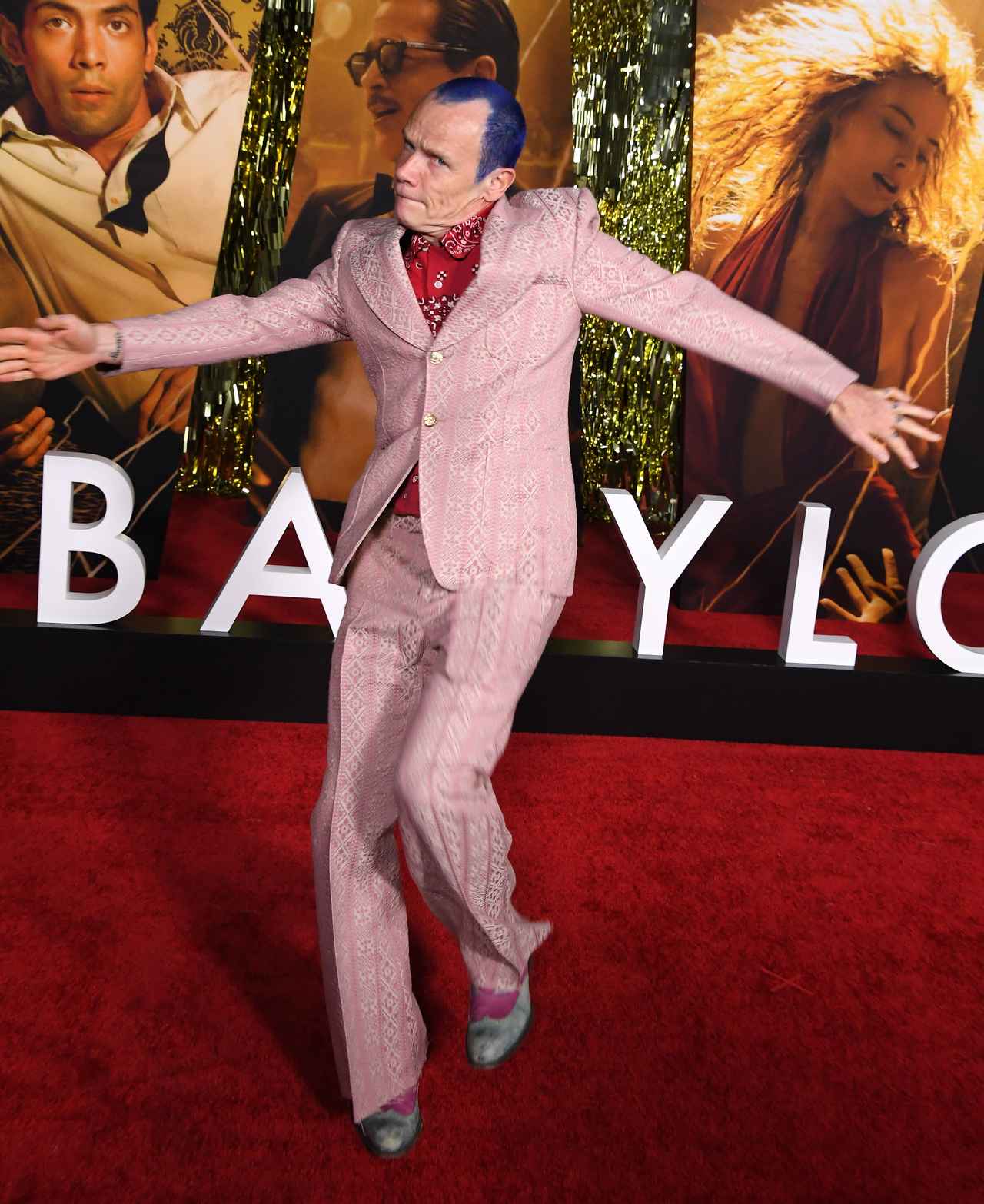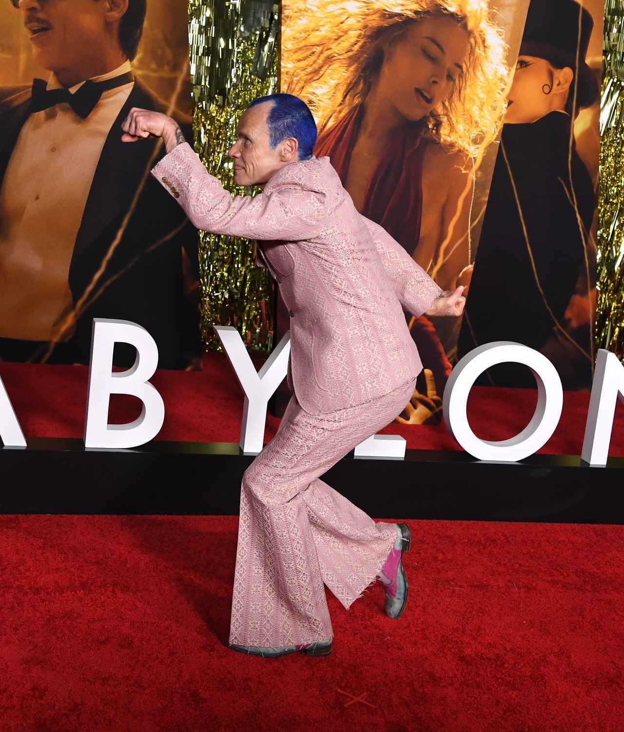 映画『バビロン』の試写会にレッド・ホット・チリ・ペッパーズのフリーが参加。レッドカーペットに現われたフリーは大はしゃぎ。(フロントロウ編集部)