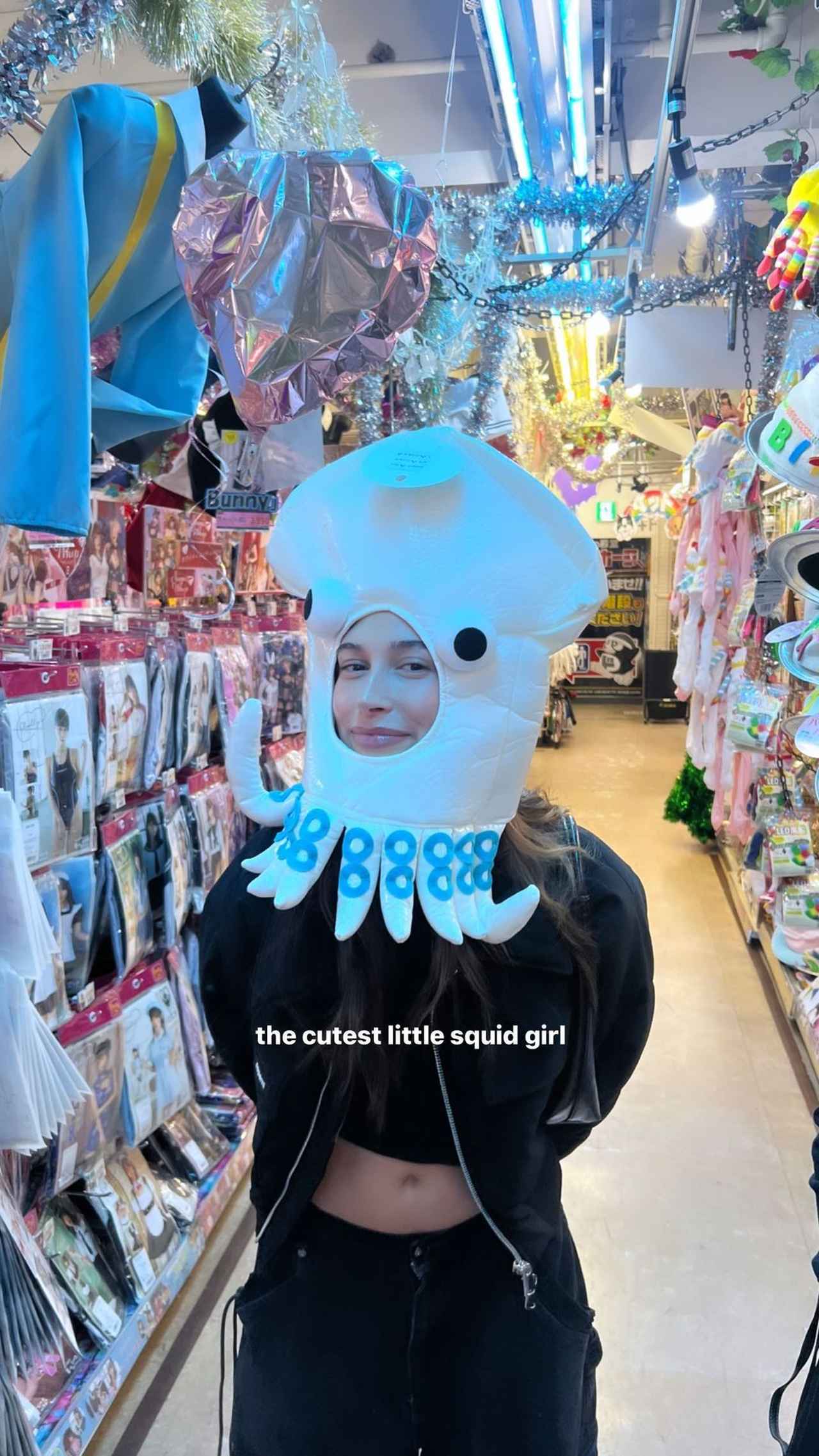 一緒に来日したジャスティン(・スカイ)がインスタグラムにストーリーにアップした、イカのかぶりものをしたヘイリーの写真が可愛かったので。(フロントロウ編集部)