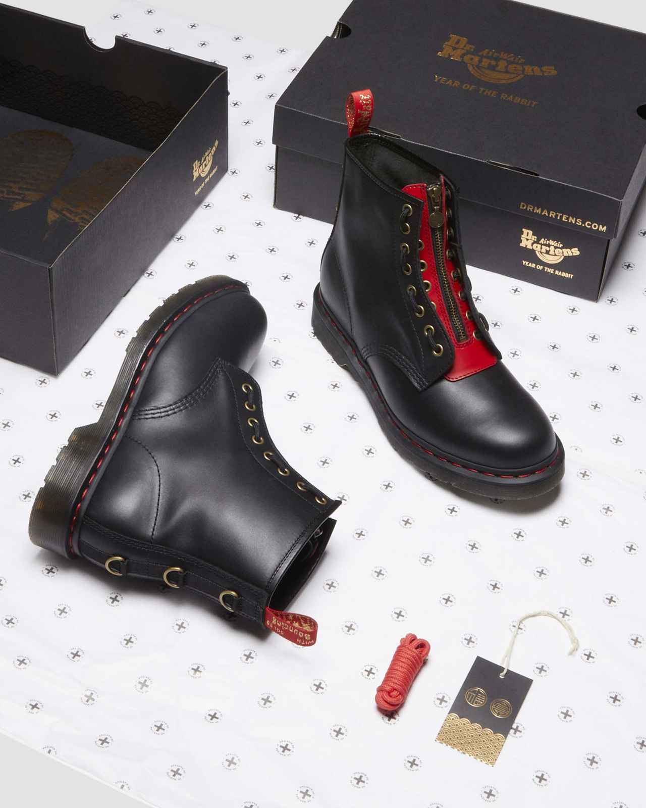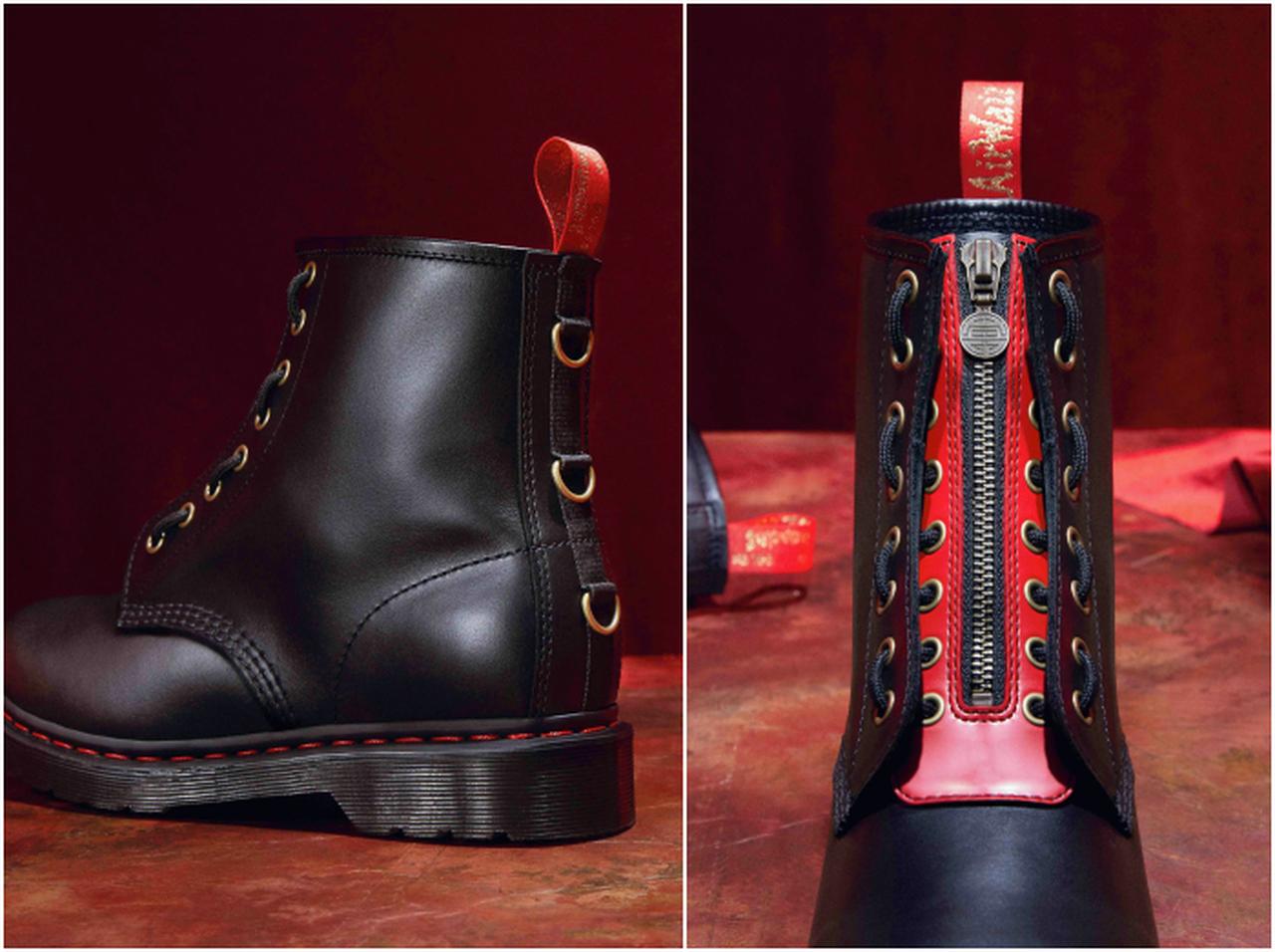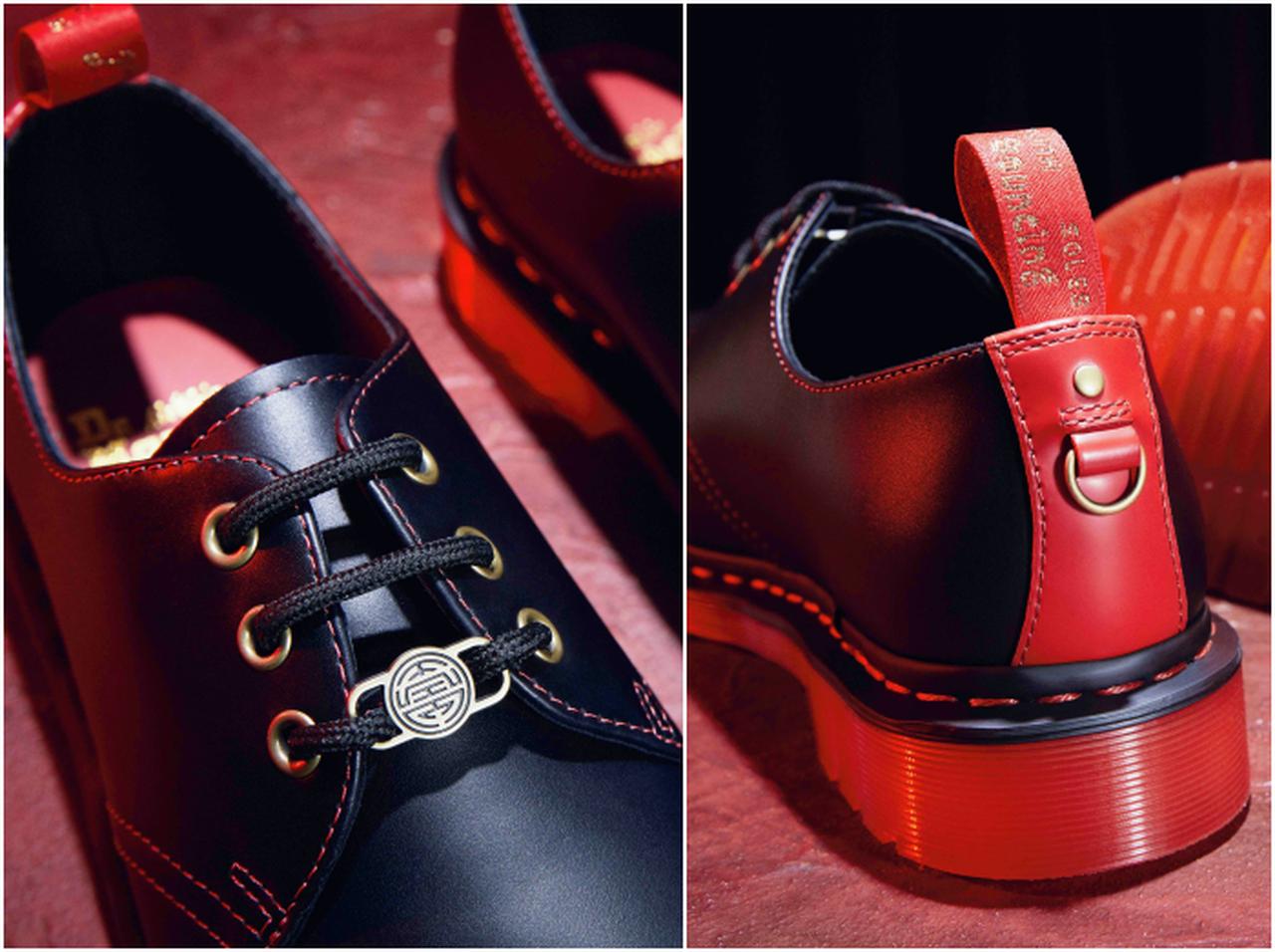 幸運を呼ぶカラーと言われるレッドとゴールドで統一したデザインで、ドクターマーチンを象徴するウェルトステッチはレッド、ヒールループはレッドとゴールドに。そしてジップやアイレットなどのディティールにもこだわり特別な仕様になっている。