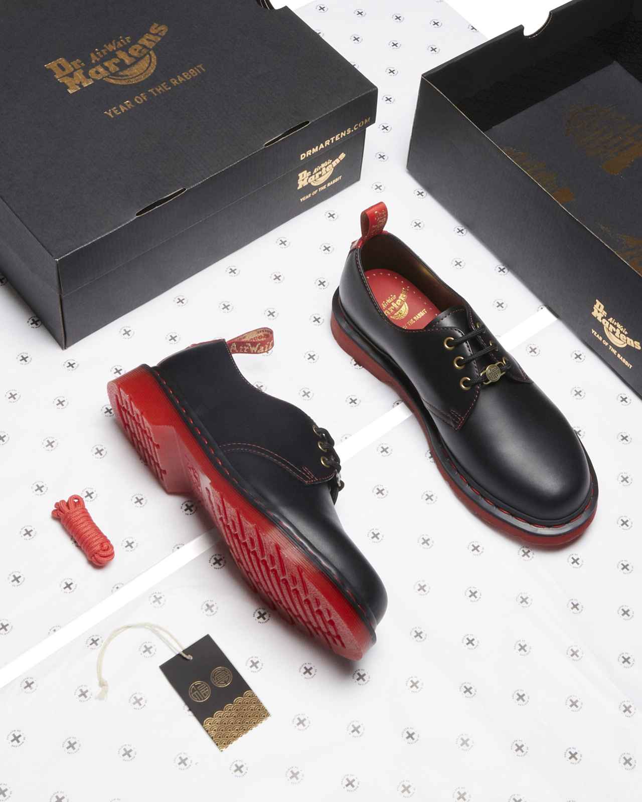 ドクターマーチンのアイコニックなシューズを、特別な装飾とレッドとゴールドのコントラストで再構築し、新年を祝う印象的な限定コレクションに仕上がっている。