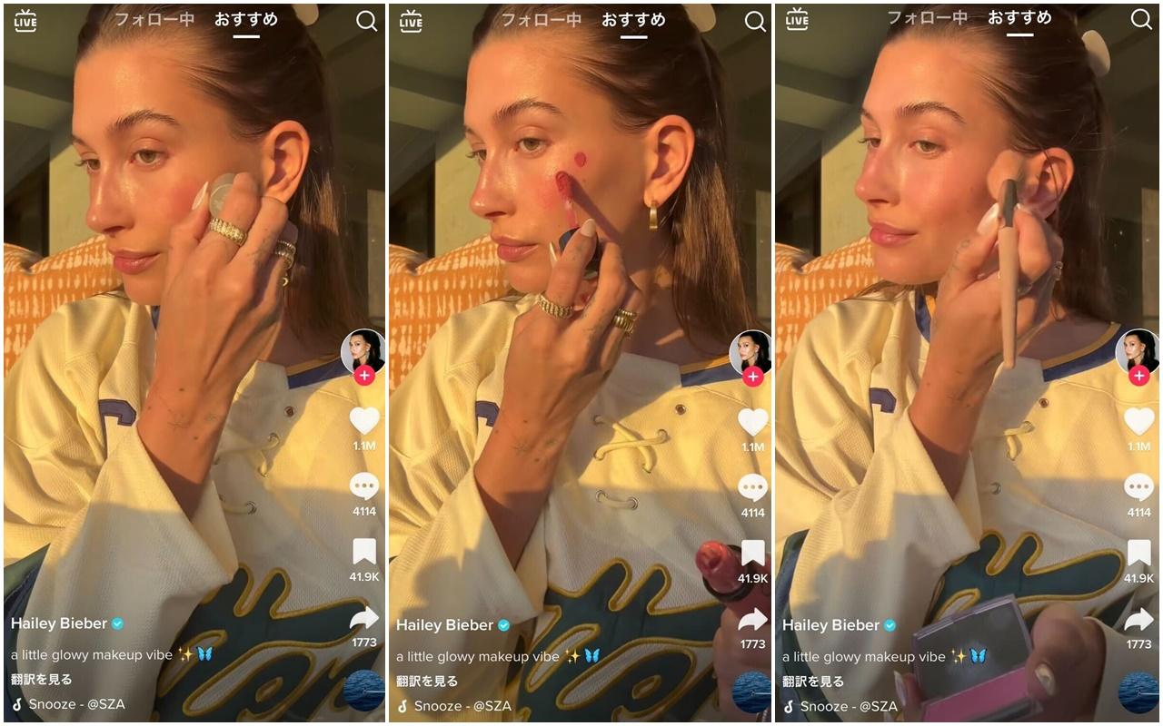 そんなヘイリーが先日自身のTikTokで紹介したのが、日々実践するこだわりのチークの塗り方。全体的にナチュラルでありながら、じゅわっとにじむような血色感がポイントのヘイリーのメイクには、簡単なのに仕上がりに差がつく秘密のテクニックが取り入れられていた。