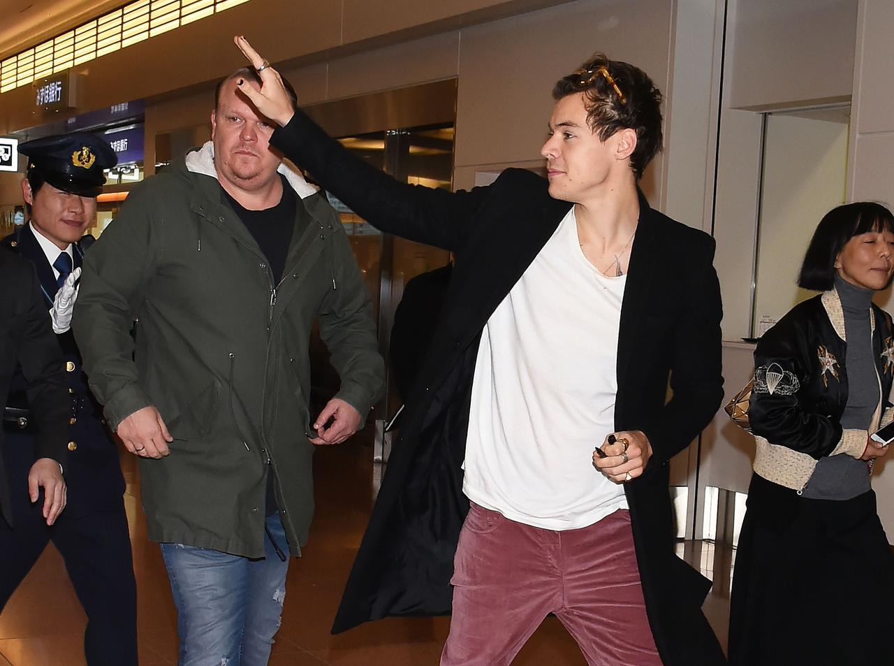 2017年にソロ初の来日公演を実施。羽田空港ではファンの声援に手を振って応えていたハリー・スタイルズ。