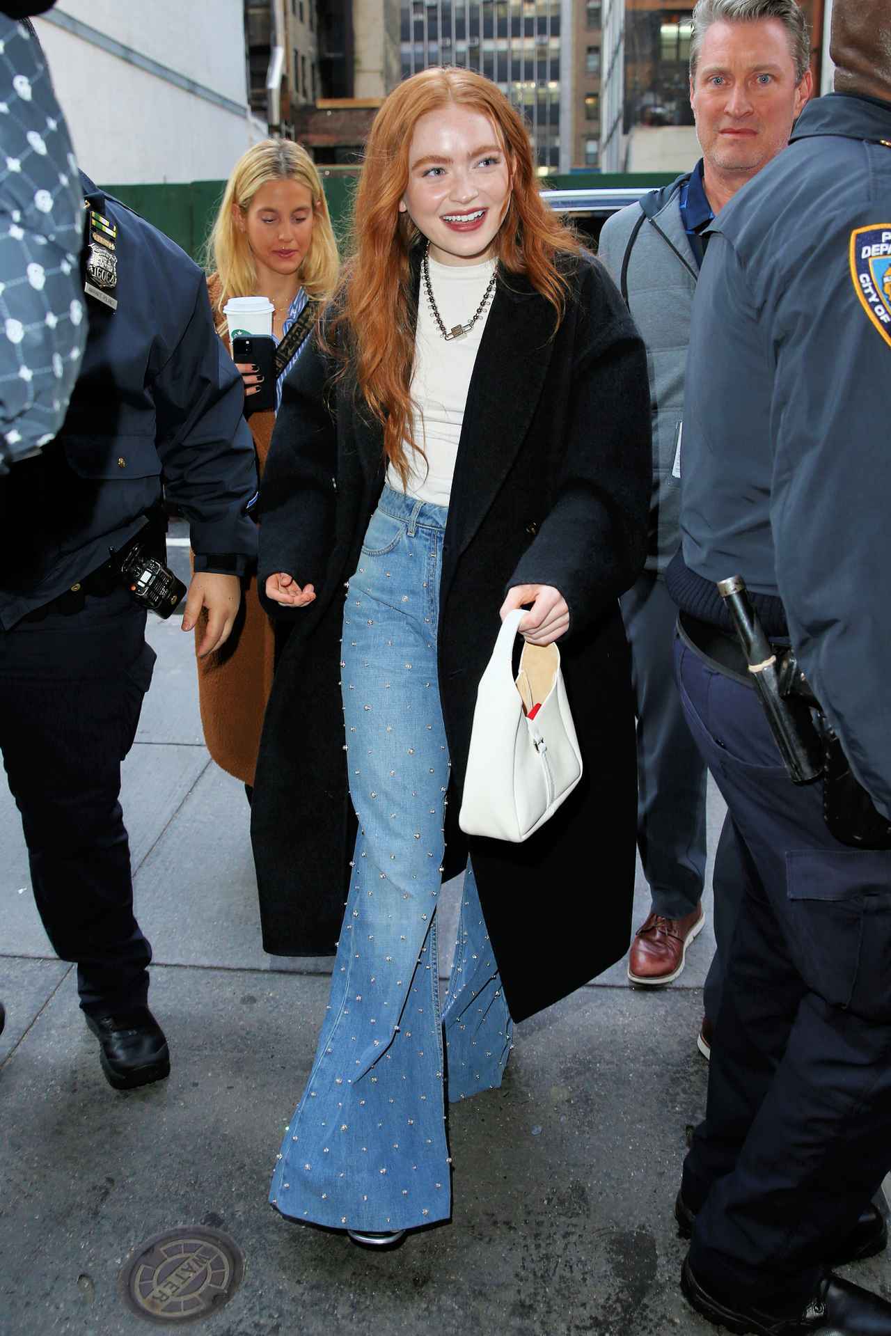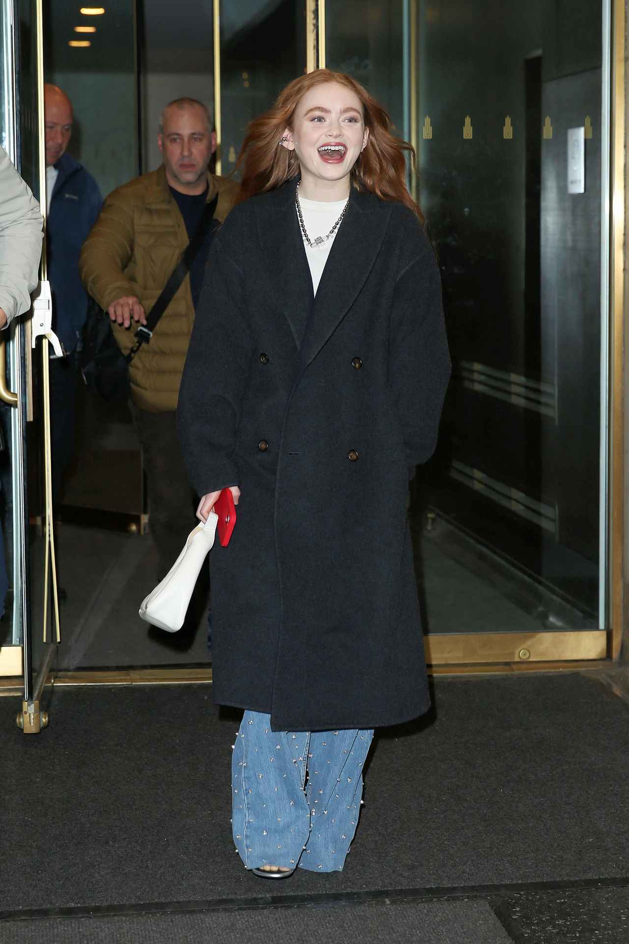 テレビ番組『Today』に出演するためにニューヨークを訪れたセイディー・シンクは、クラシカルな黒のロングコートで身を包んで冬仕立て。