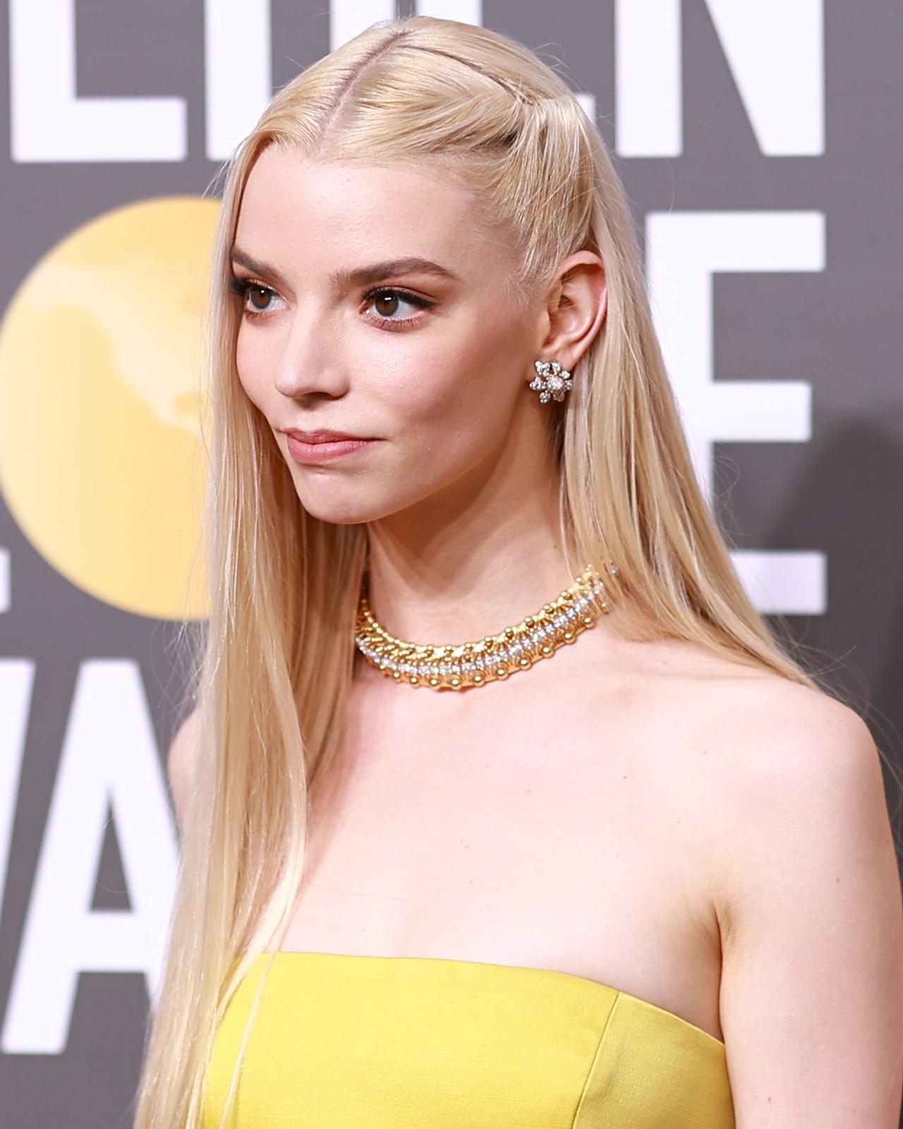 俳優のアニャ・テイラー・ジョイは、クリーンなブロンドのストレートヘアをお披露目。前髪の左側だけハーフアップのようにアレンジすることで、キュートさUP。