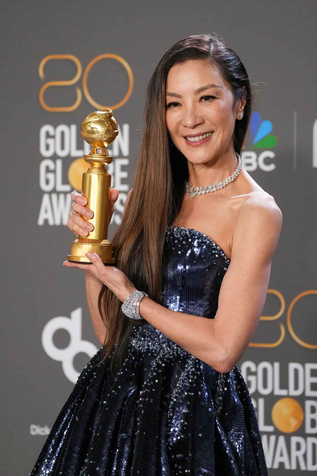 「私は去年、60歳になりました。女性ならば分かると思いますが、月日が経ち、(年齢という)数字が大きくなるうちに、機会は少なくなっていきます。その当時私は自分に『あなたはよくやったじゃない。スティーヴン・スピルバーグ、ジェームズ・キャメロン、ダニー・ボイルといった素晴らしい人たちと働けたんだから』と言い聞かせていました。そんな時、『エブリシング・エブリウェア・オール・アット・ワンス』という映画に出会えたのです」と語り、キャリア初のゴールデン・グローブ賞となる主演女優賞(コメディ/ミュージカル部門)をもたらした映画『エブリシング・エブリウェア・オール・アット・ワンス』に感謝した。