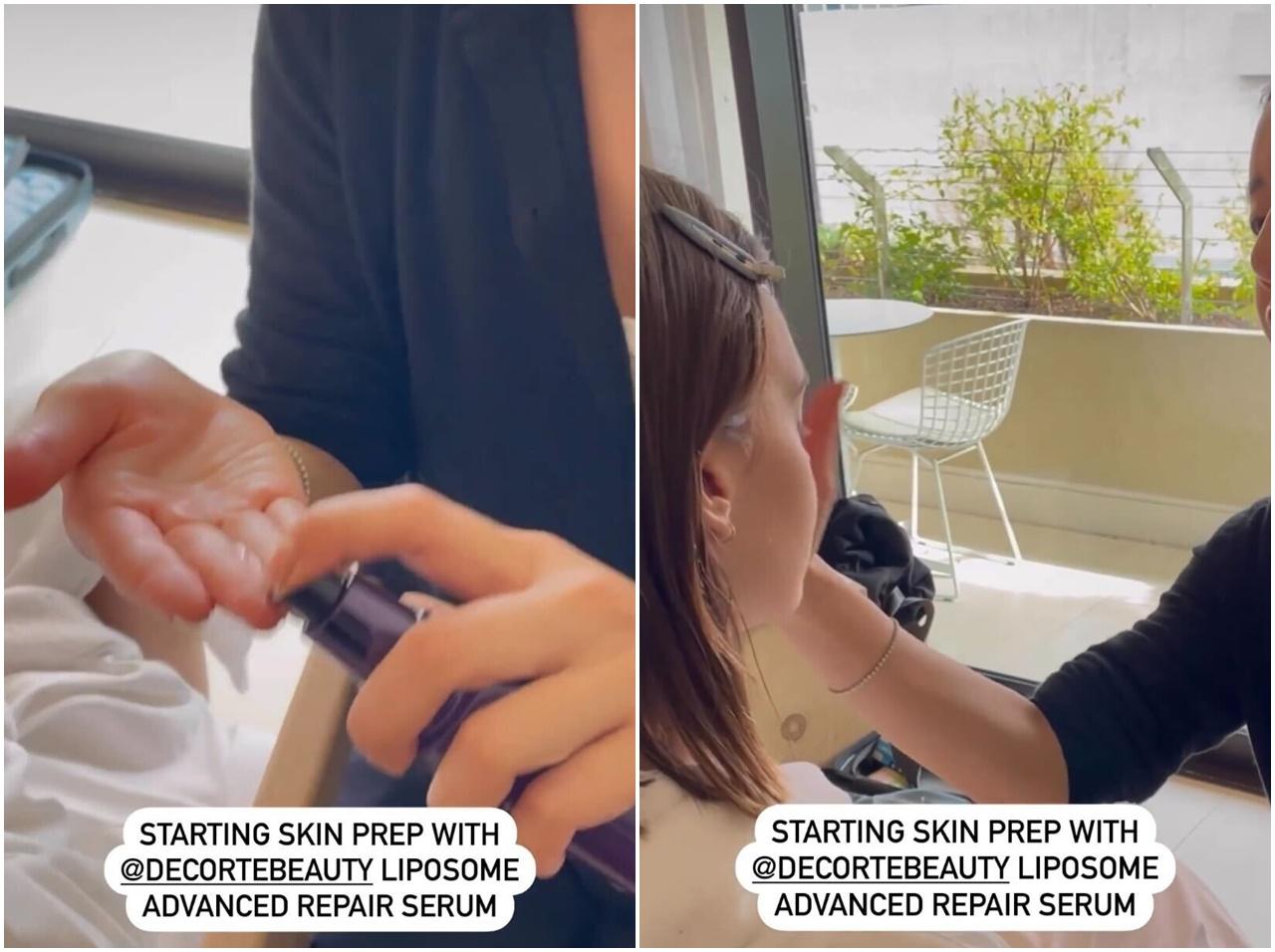 デイジーのメイクを手掛けた人気メイクアップアーティストのニーナ・パークは、実際に製品をデイジーの肌に使う様子をSNSで公開。「リポソーム アドバンスト リペアセラム」はメイク前に使用し、「コンフォート デイミスト セット&プロテクト」はメイク前とメイク後の両方で使用したという。