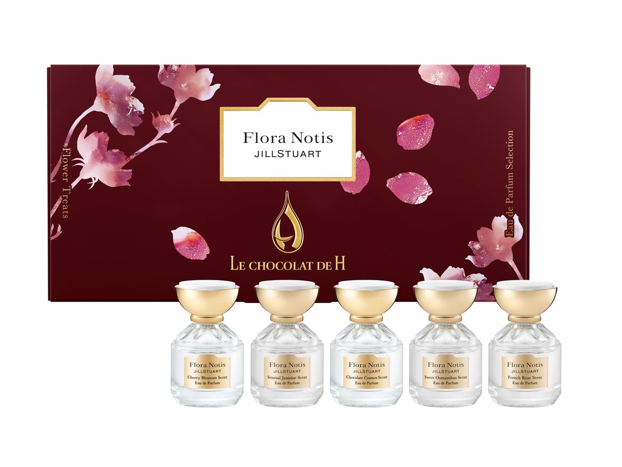 フローラノーティス ジルスチュアート フラワートリーツ オードパルファンセレクション 5ml×5種《チェリーブロッサム / センシュアルジャスミン / チョコレートコスモス / スウィートオスマンサス / フレンチローズ》6,380円(税込)