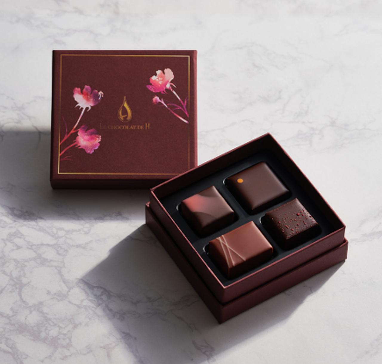「ル ショコラ ドゥ アッシュ」では、フローラノーティスから着想を得たフレーバー4種(金木犀・ジャスミン・ローズ・桜ライチ) のボンボンショコラアソートを限定発売。(商品名:「フローラル カカオ」)の購入者には、チョコレートコスモスオードパルファン2.5mLをプレゼントする。