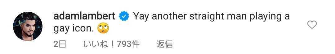 アダムは以前からジョージの伝記映画を見たいと語っており、ジョージ役を演じたいと英Metroのインタビューで明かしたこともあった。そんなジョージ役の進展に喜んでいるのかと思いきや「またストレートの人がゲイのアイコンを演じるんですね。やったー」と皮肉交じりにコメント。