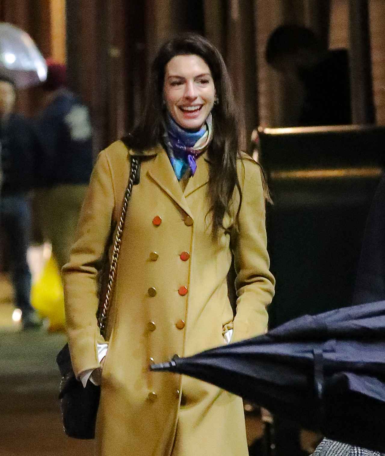 ニューヨークのフォトスタジオを訪れていたアン・ハサウェイは、凛とした印象を与えてくれるストレートラインのロングコートを着用。全体的にエレガントな雰囲気だが、足元から覗くカーキのワイドパンツやゴツめのシューズでエレガントさを中和させて。