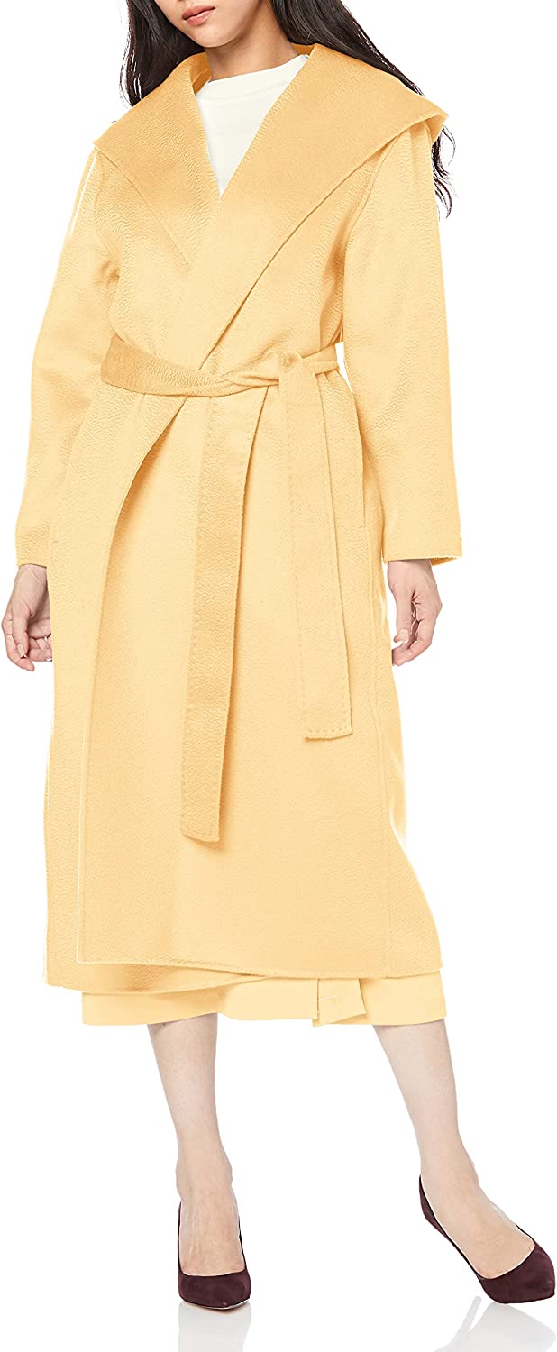 ペールトーンのイエローがさわやかなガウン型コート。襟周りはフードになったデザインで、カジュアルにもキレイめにも使える。バストはスッキリと、袖周りに稼働幅を持たせ動き易い袖のパターンに。