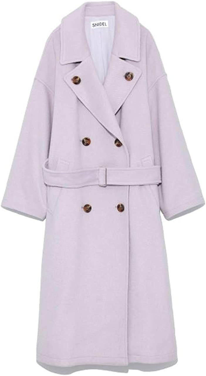 柔らかなラベンダーカラーのコートは、春先まで使える1枚。ベルトをせずにI ラインで着ても、ウエストマークしてトレンチコート風に着てもおしゃれにまとまる。