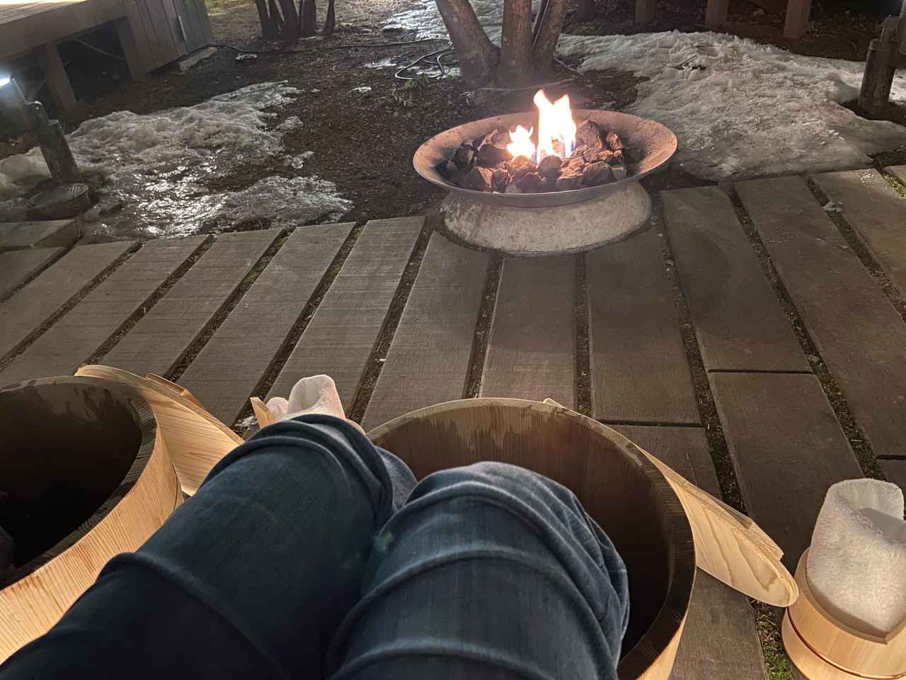 足湯は全身浴よりも気軽で、冷え性改善やリラックス効果も期待できるので、焚火を見ながらほっこり足湯で癒されてみるのもいいかも。