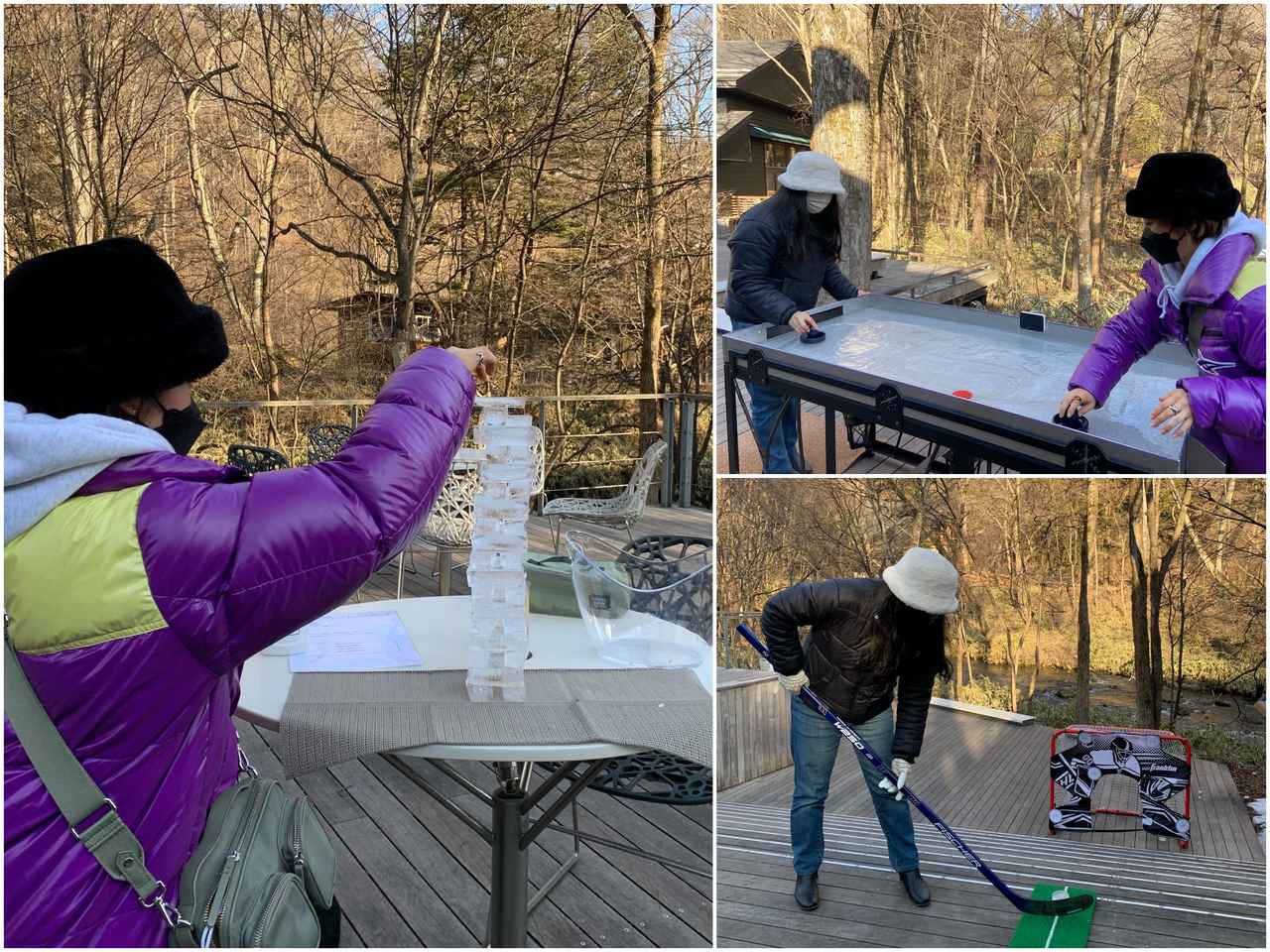 ハルニレテラスに、ミニカーリング、アイスエアホッケー、アイスパックシューティングなどの6種の氷のゲームを用意。寒さで凍らせた氷を使ったゲームはどれも楽しくて、子どもから大人まで夢中になって遊んじゃうはず。