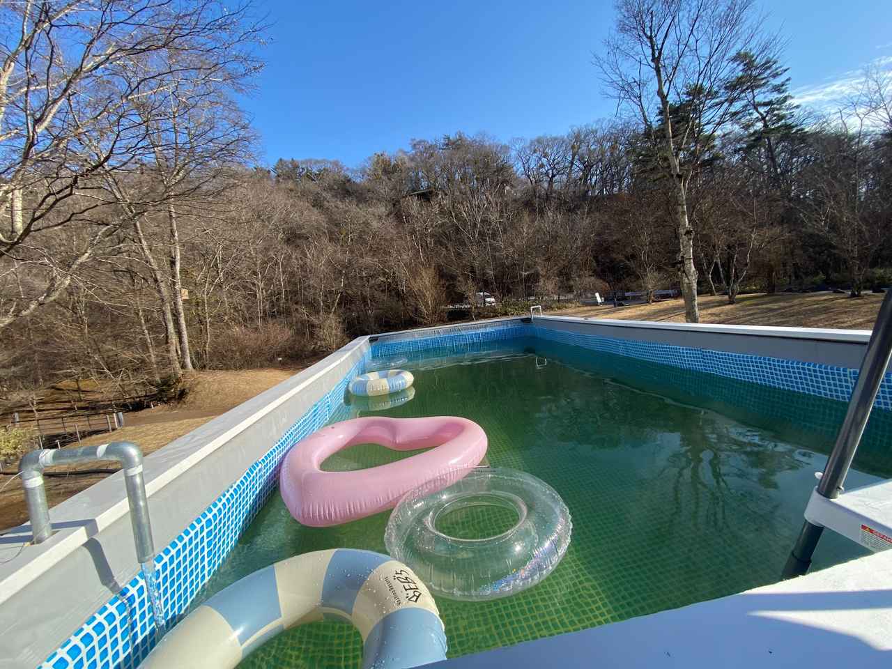 BEB5軽井沢から徒歩10分、星野温泉 トンボの湯の前の広い高原エリアに行くと、そこには冬限定で源泉を使用した温泉プール「トンボのプール」が!