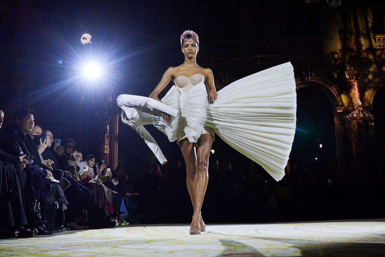 ヴィクター&ロルフ(Viktor&Rolf)のオートクチュールコレクションに参加した、ラッパーのドージャ・キャットが、「つけまつ毛」を斬新な方法で使用していた。(フロントロウ編集部)