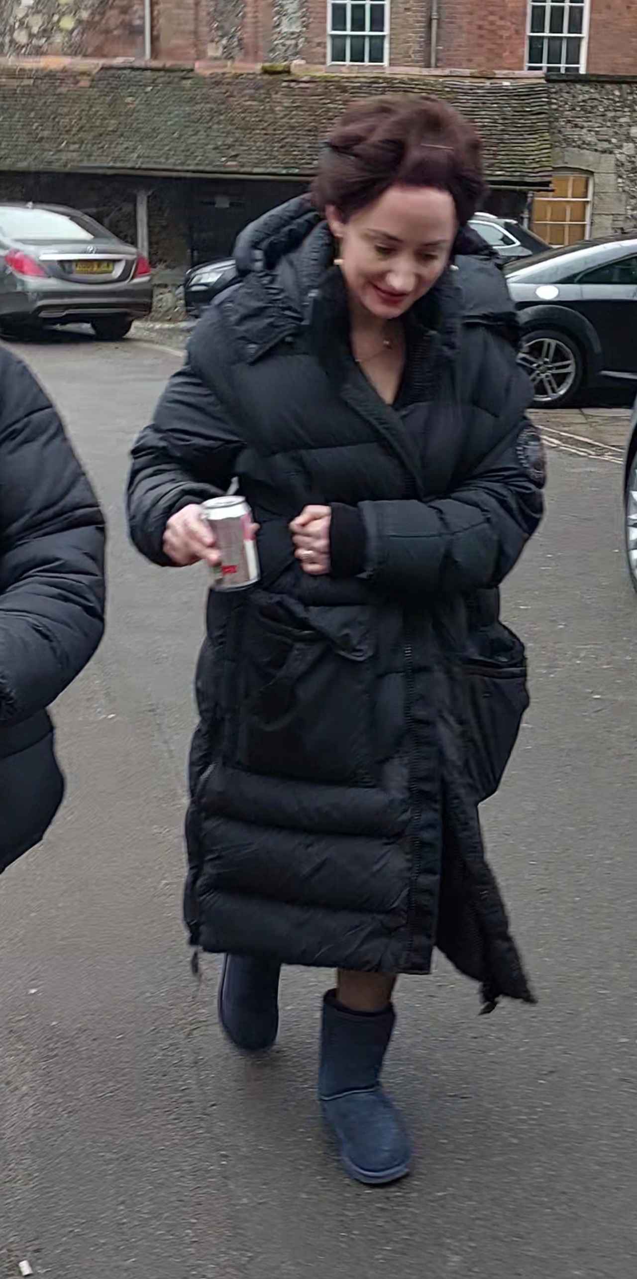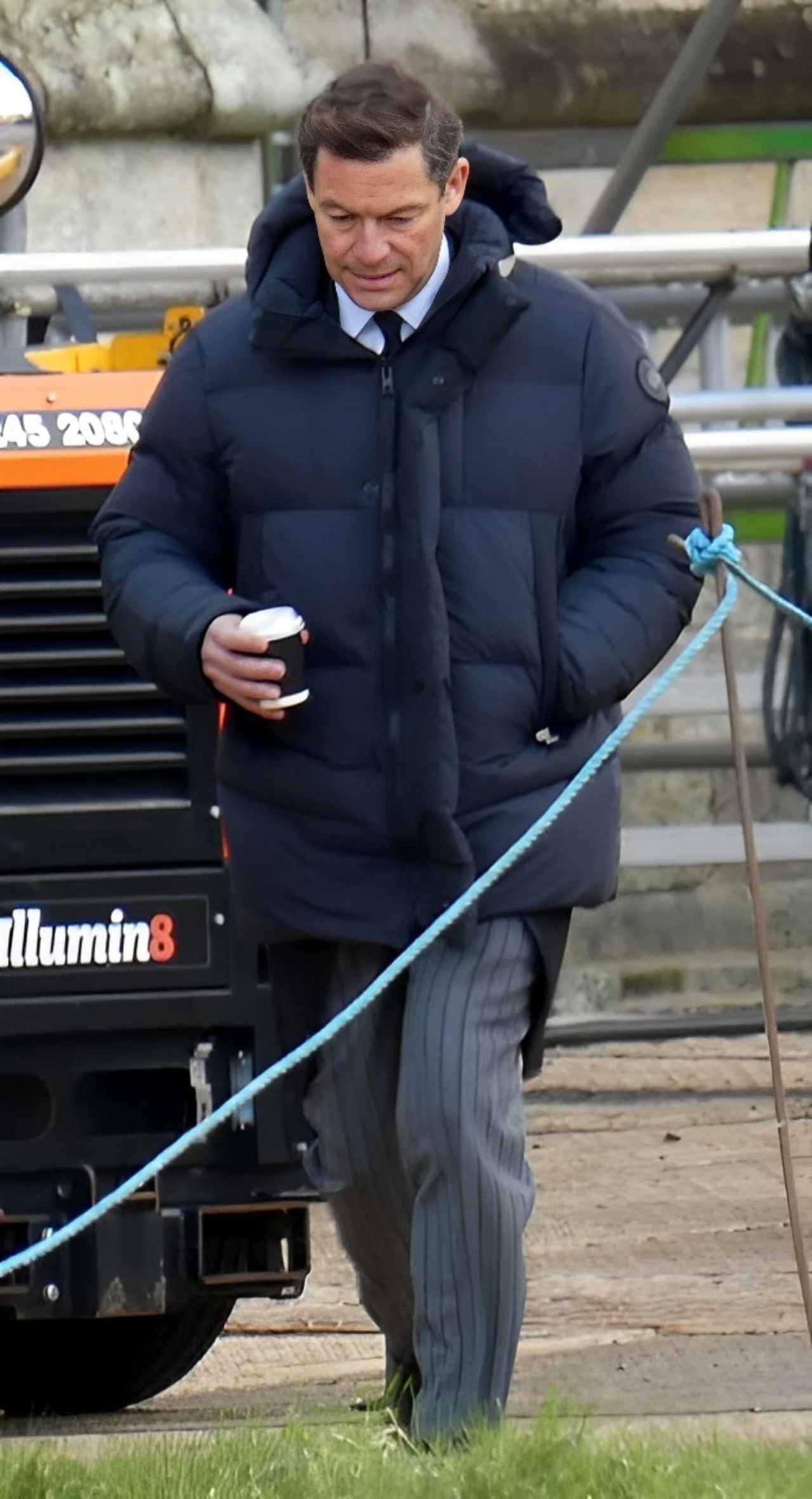 シーズン5からキャスト入りした元首相トニー・ブレア役のバーティ・カーヴェルと、シェリー・ブレア役のリディア・レオナルドも、暖かそうなコートを着て撮影準備中。