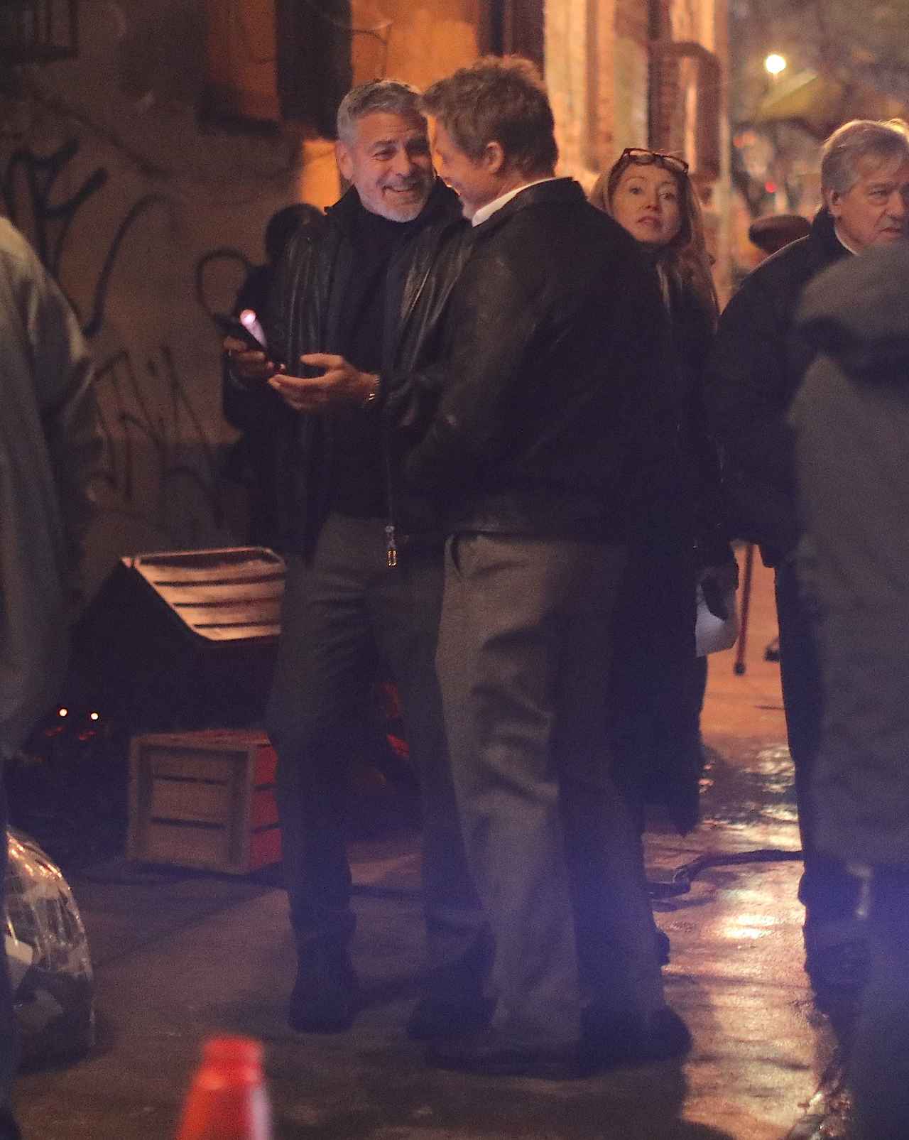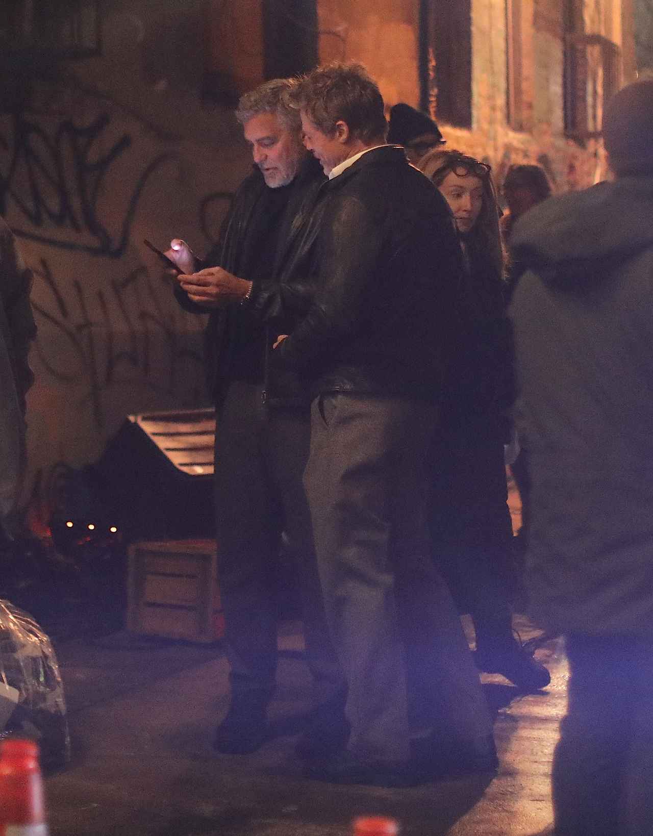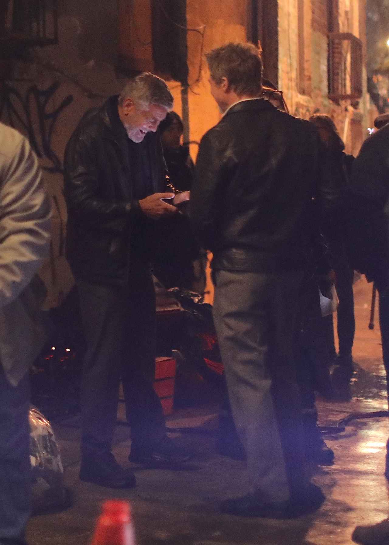撮影ではブラックのレザージャケットにグレイのパンツというお揃い衣装で車に乗り込む2人の姿をカメラがキャッチ。スリラーということでピリッとした雰囲気が流れることもあるが、撮影の合間にはジョージがブラッドにスマホの画面を見せて、2人で笑っていたりと、友達と一緒の撮影を楽しんでいるよう。