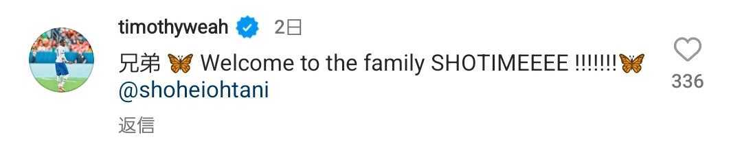 ティモシーは2021年にニューバランスと契約しており、大谷よりひと足早くニューバランス・ファミリーに。今回大谷がニューバランス・ファミリーの一員に加わるのが嬉しかったのか、ニューバランスの投稿に「兄弟」と漢字を使い、「ようこそファミリーへショウターーーイム!!!!」と大喜びしていた。