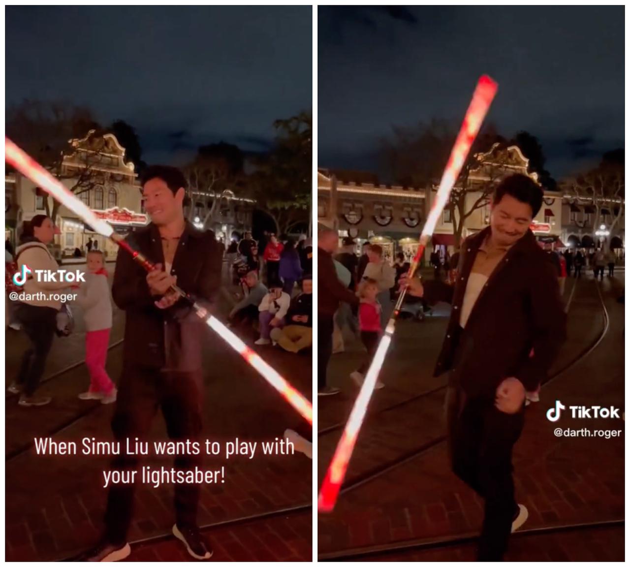 TikTokに動画を投稿したロジャー・スターク(@darthroger)と名乗る男性によると、シムは彼が持っていたオリジナルのライトセーバー(※)を見て「めちゃくちゃクールだね」と褒めてくれたそうで、握手と自己紹介をしたあと、“ライトセーバーで少し遊んでもいいか”とたずねてきたという。シムのお願いを快諾したロジャーがライトセーバーを渡すと、シムは器用にそのライトセーバーを回して見せ、「(『スター・ウォーズ』の)役をゲットできたかな?」と言ってライトセーバーをロジャーに返した。