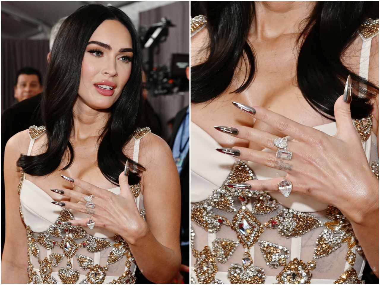 俳優のミーガン・フォックスは、今季トレンドのクロムネイルをチョイス。近未来的な輝きを放つシルバーをベースに、爪の中心にクロス(十字架)モチーフのネイルアートを合わせてクールで大人っぽく。