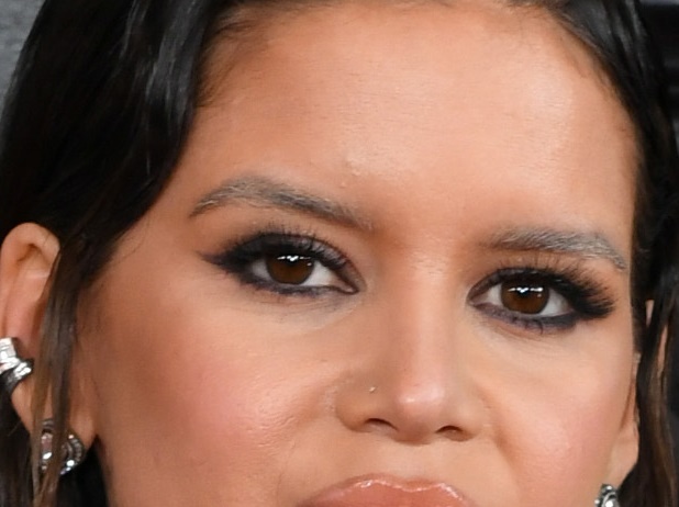 2000年代を彷彿させるツヤ感のあるヌードリップメイクに囲み目アイメイクを合わせたのは、カントリーシンガーのマレン・モリス。目頭から1周ぐるっと囲むようにブラックのアイラインを引いたメイクを披露。