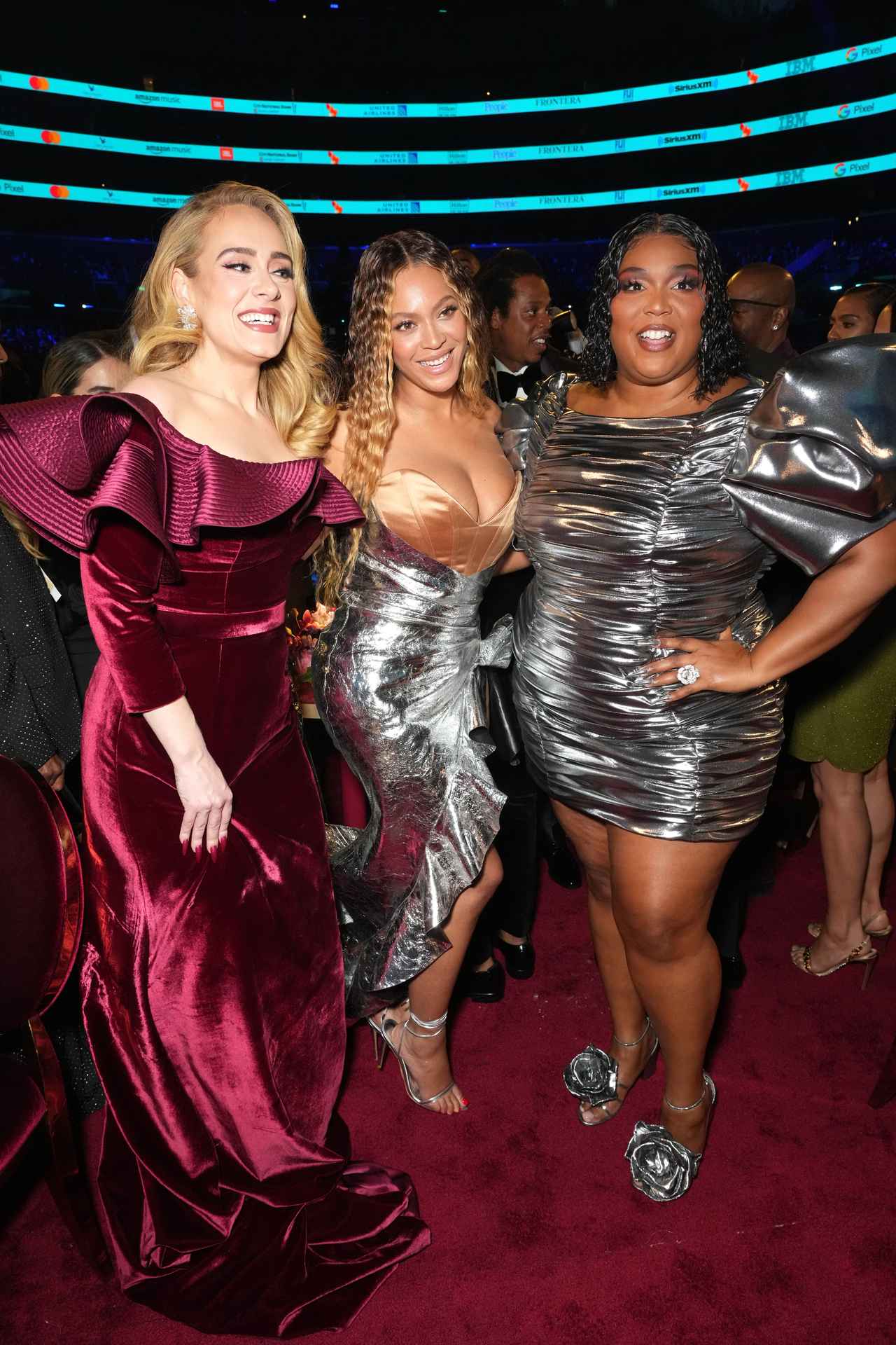 ビヨンセの歴史達成を自分のことのように喜んでいた、アデル(左)とリゾ(右)。