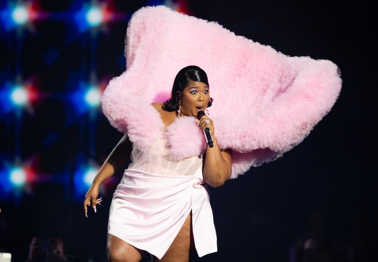リゾは巨大なピンクのドレス、サムは風船がぐにゃぐにゃしたようなブラックの衣装で登場し、観客やSNSを盛り上げた。
