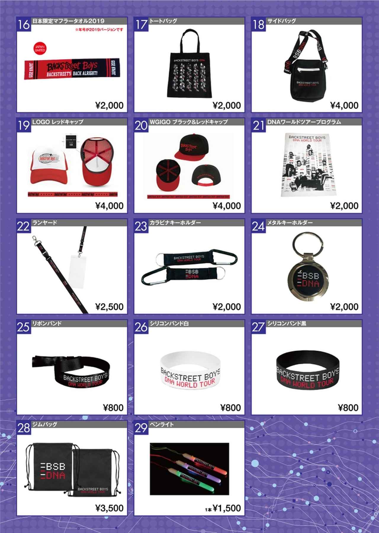 そんなバックストリート・ボーイズの来日公演のグッズが発表された。来日公演のグッズは、なんと29種類。Tシャツやフーディといったライブの定番グッズを中心に、キャップやキーホルダー、プログラムなどが発売される。